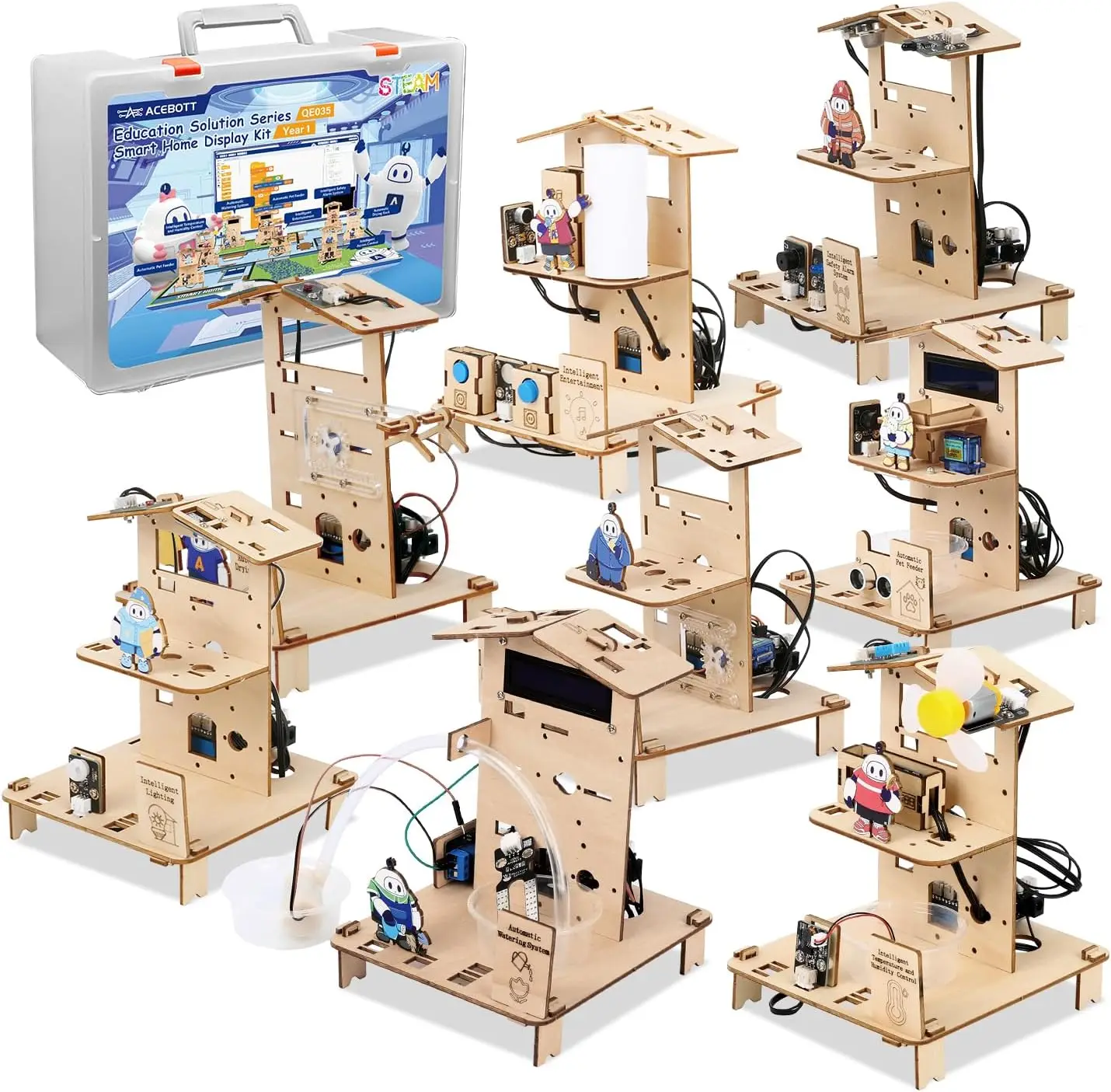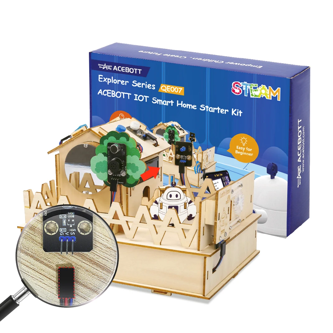 ACEBOTT Smart Home STEM STEAM Starter Kit Casa de madera IoT Wifi Programación bloqueada para ESP32 Arduino