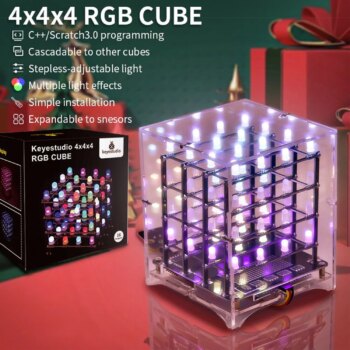Arduino 4x4x4 RGB LED Cube Kit – DIY 3D Light Display STEM Learning Kit with Voice Control