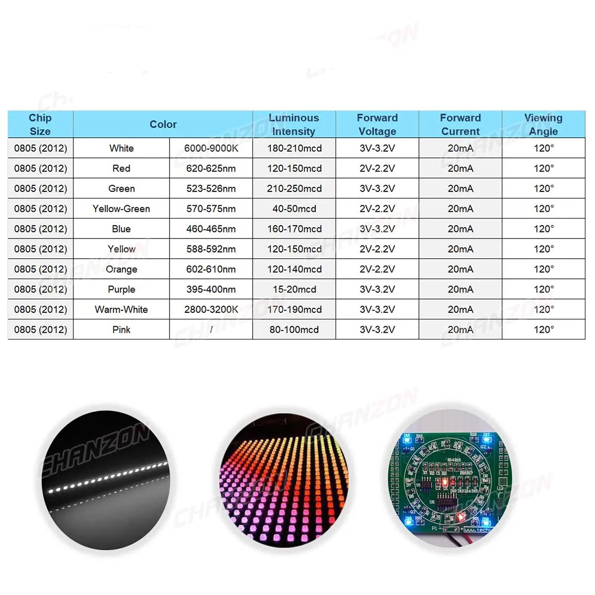 Forward Voltage: 2.0-2.2V (Red/Yellow/Orange) |3.0-3.2V (Warm White/White/Green/Blue/UV/Pink)