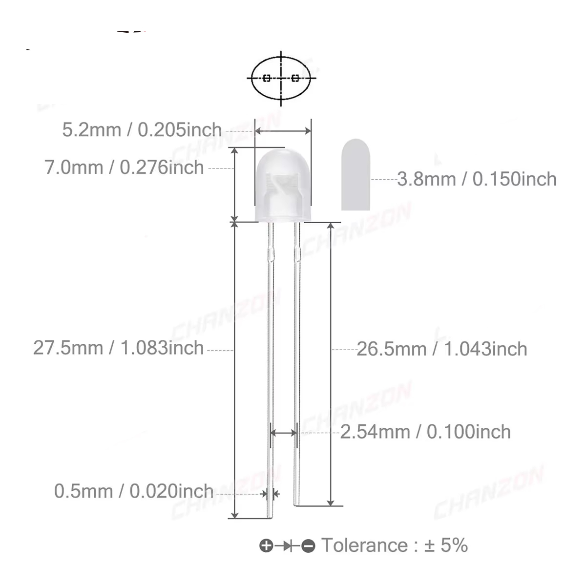 Forward Voltage: 2.0-2.2V (Red / Yellow) | 3.0-3.2V (White / Green / Blue)