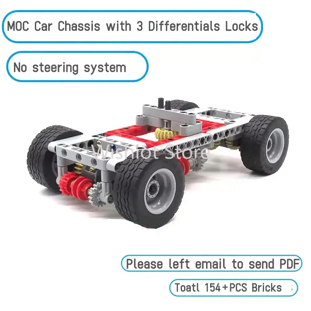 154PCS MOC Car Chassis with 3 Differentials Locks Bluetooth-Pair Power Motor APP Control Rechargeable for Building Blocks Car Modification