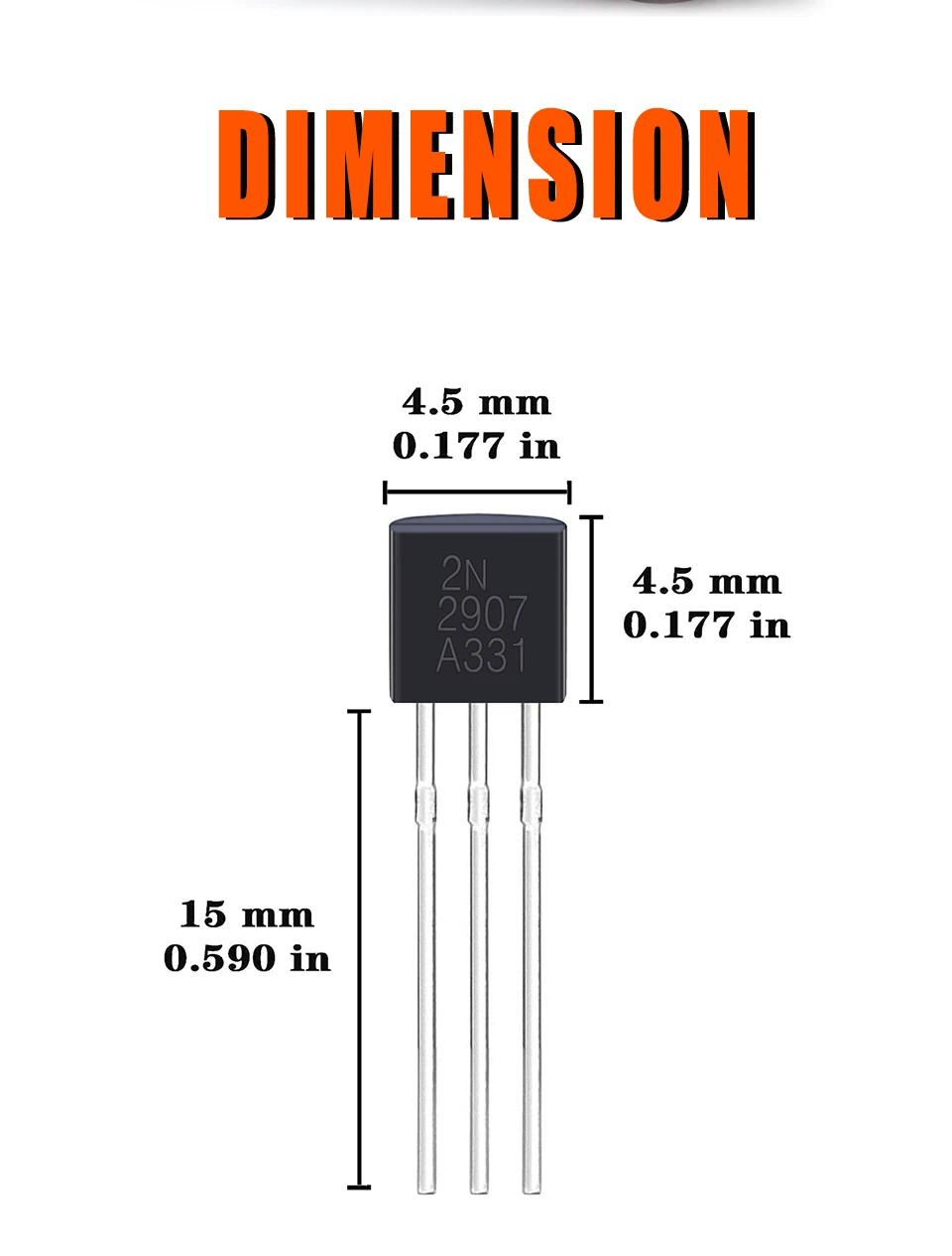 20 Values BJT Transistors: A1015, BC327, BC337, C1815 S8050, S8850, 2N2222, 2N2907, 2N3904, 2N3906, C945, S9012, S9013, S9014, S9015, S9018, 2N5401, 2N5551, BC547, BC557 PNP NPN .