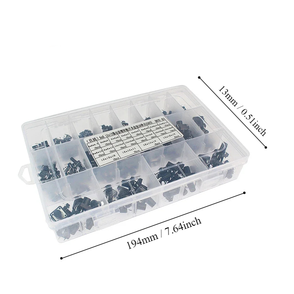Switch size: 6 x 6 mm, 12 x 12 mm;