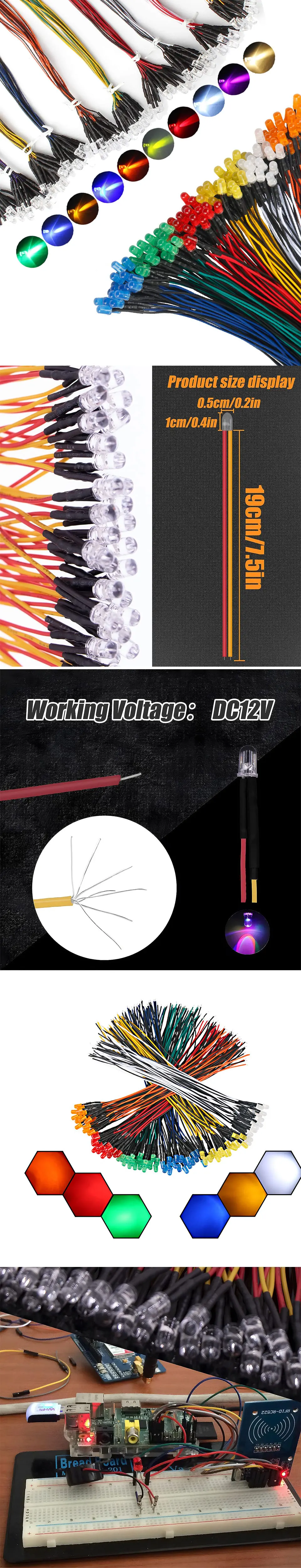 Hassle-Free Installation: Our DC 12 Volts prewired LED diodes 5mm feature built-in resistors and 20cm (7.87 inches) flexible wire leads, eliminating the need for soldering or additional components, making your projects quicker and more convenient to complete