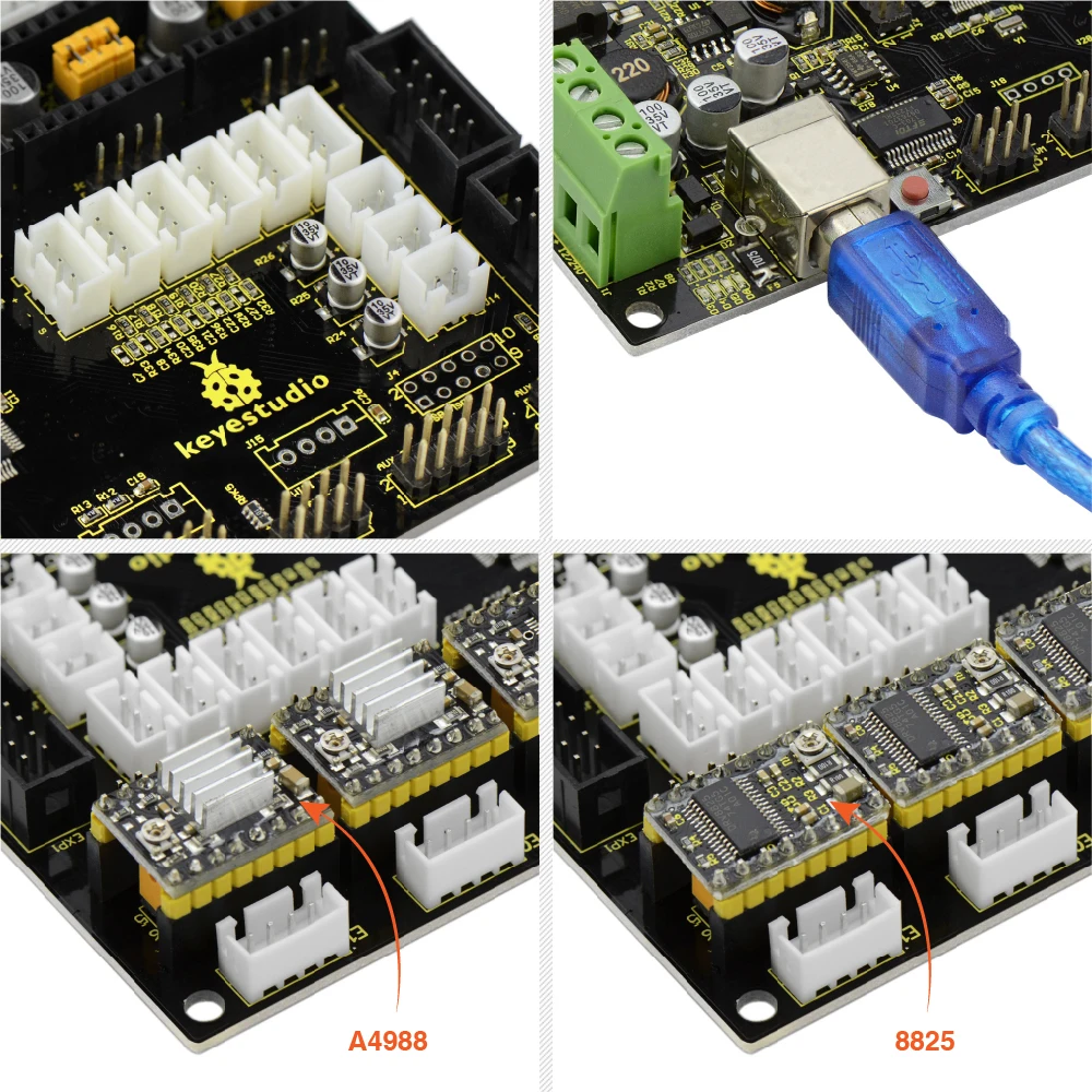 Replaceable motor driver, support 4988 driver and 8825 driver.