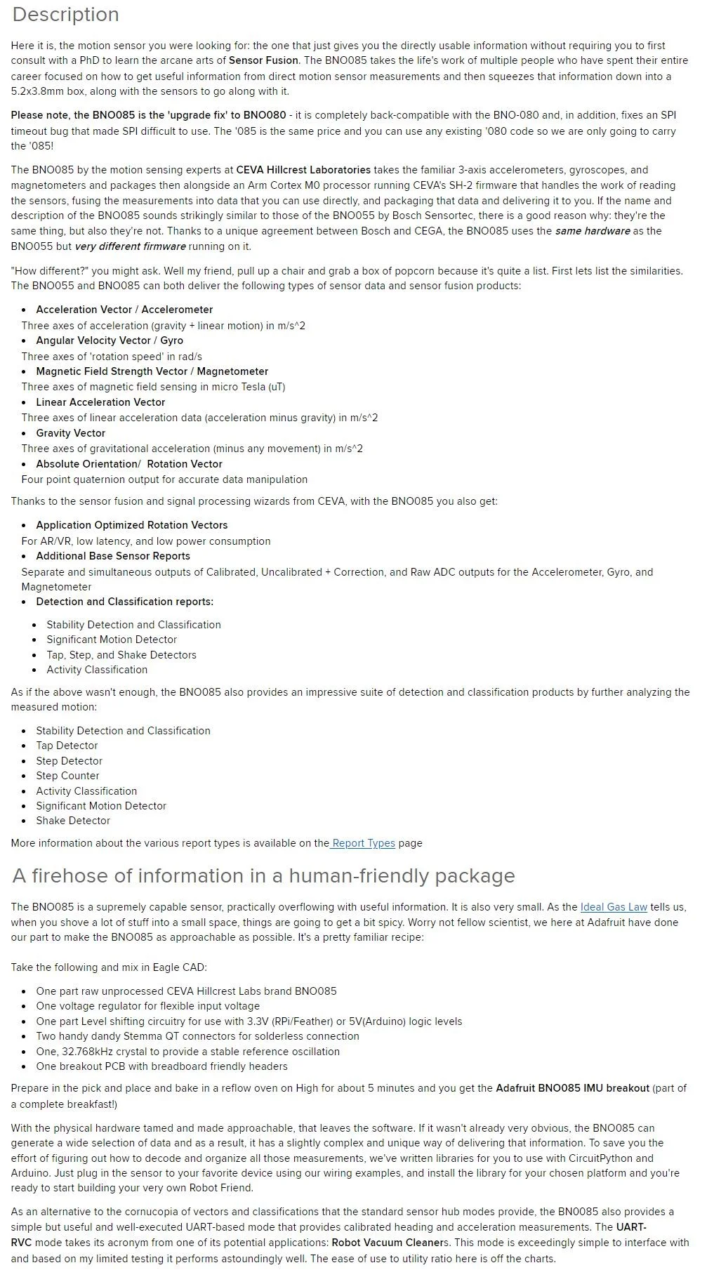 4754 Adafruit 9-DOF Orientation IMU Fusion Breakout
