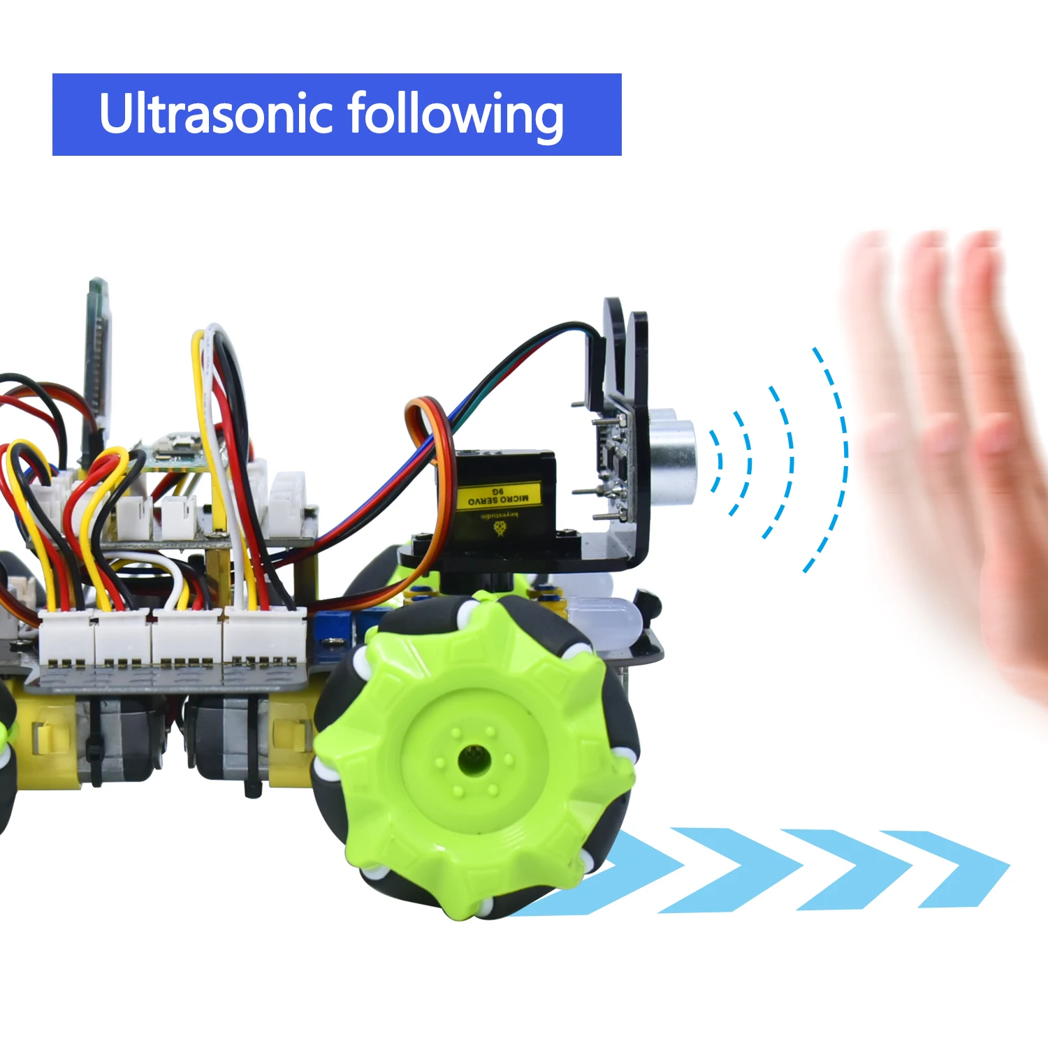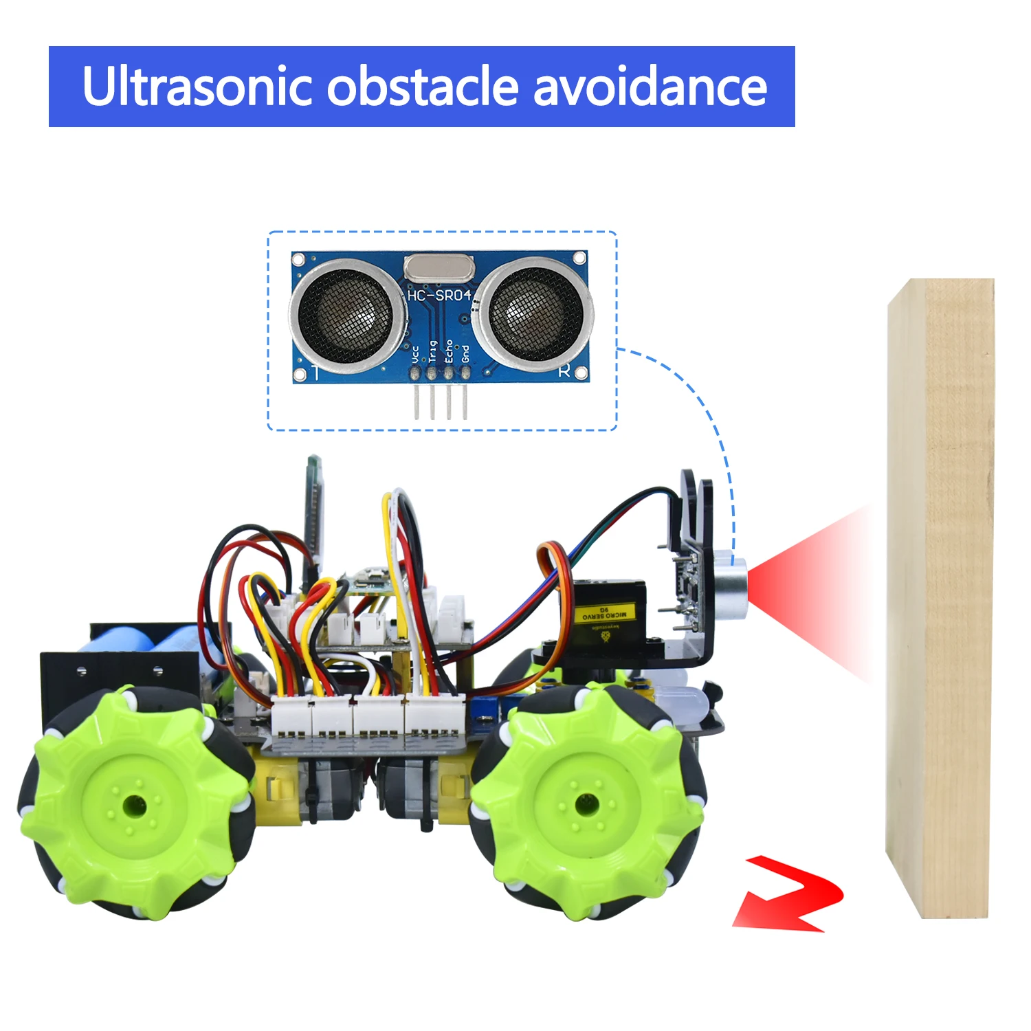 What’s more, the 4 WS2812RGB LEDs enable to display different colors, and the 2 seven-color lights empower to make direction lights for the car. By the way, the motor speed of this product is adjustable.