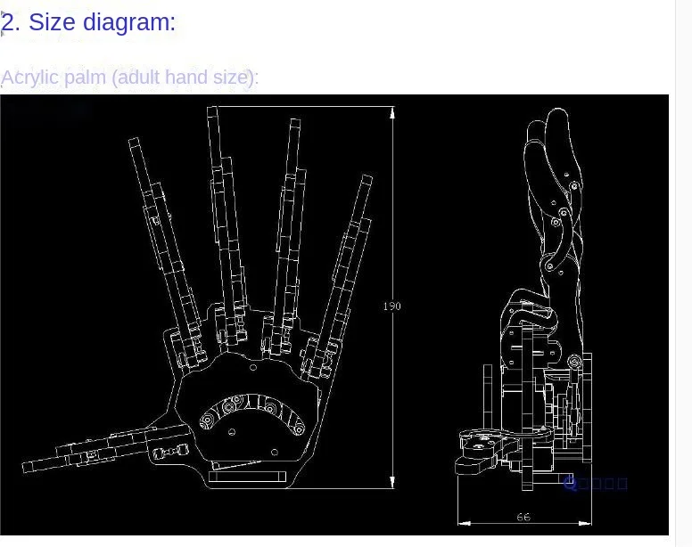 Using 5 metal small steering gear to drive the five fingers, the response speed is faster. The connecting rod is directly connected between the five fingers and the steering gear, and the installation error and virtual position are smaller, and the repetition accuracy is higher! Adult palm size, can stably grasp the appropriate size of objects within 200 grams without falling. The five fingers of this machine focus on teaching and research demonstration, and can not be applied to the occasions with high use intensity such as actual production.