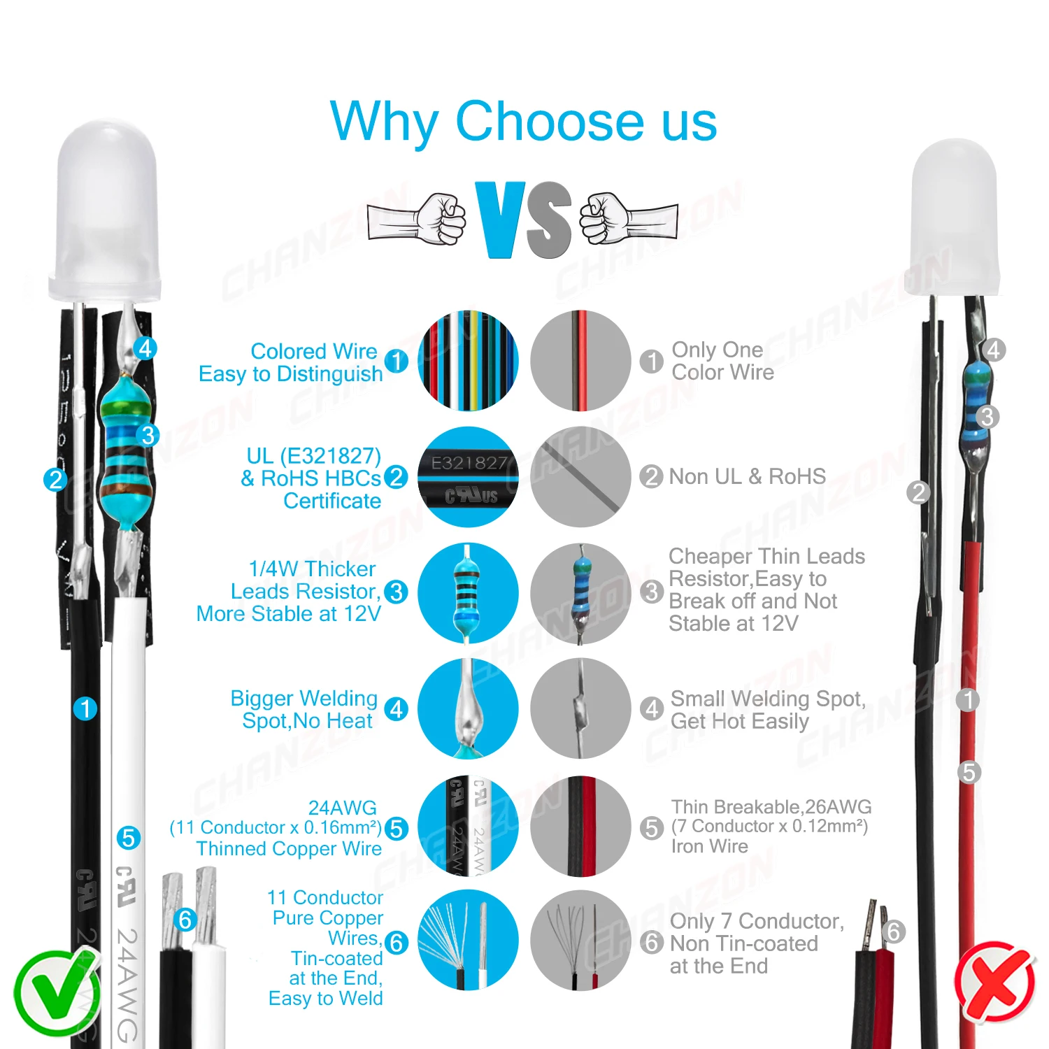 Polarity: Anode (Color Wire) | Cathode (Black Wire)