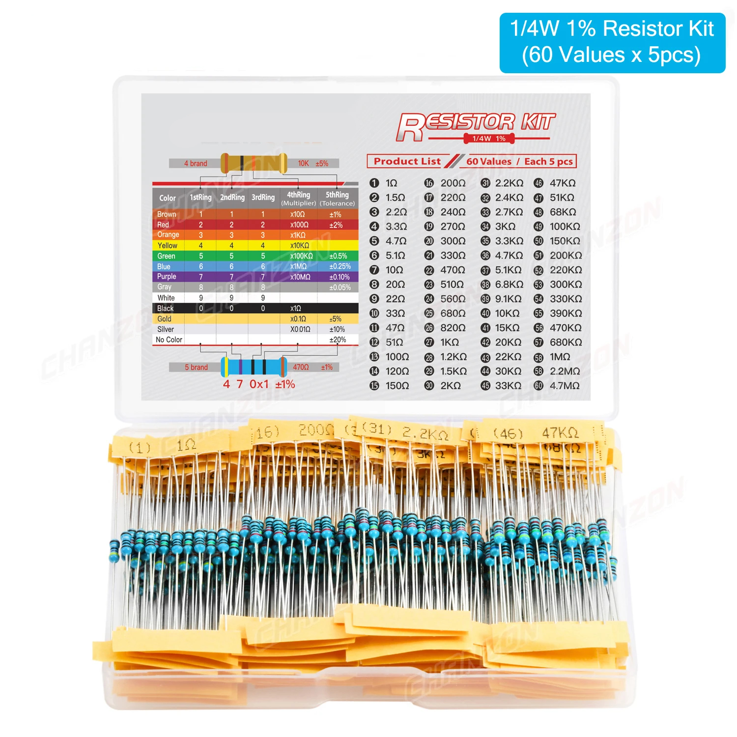 300 pcs 1/4W 1% Resistor (60 Values x 5pcs)