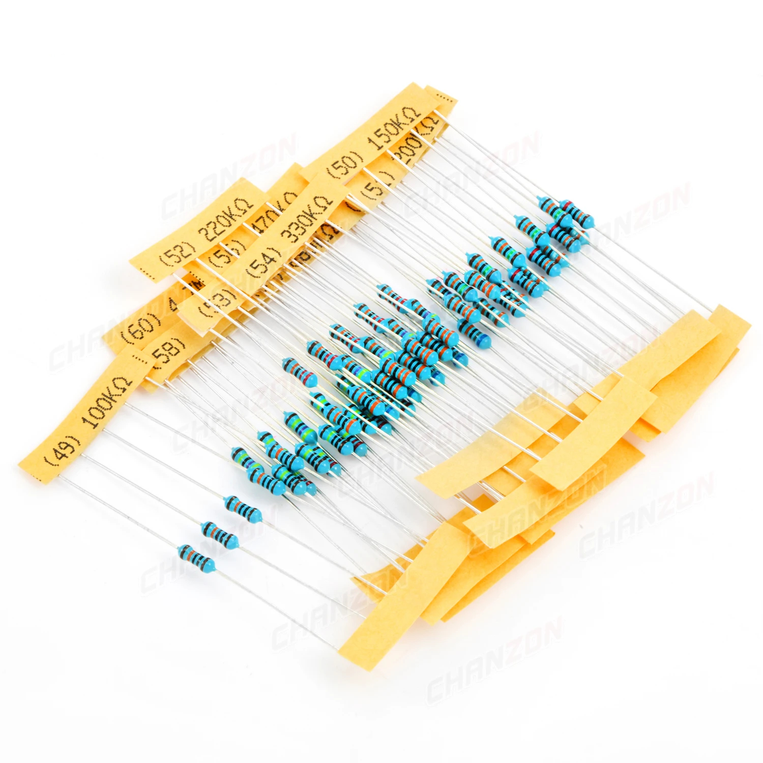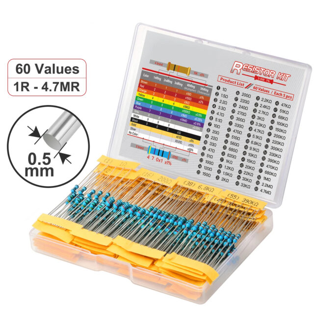 300 Pcs 60 Values 1/4W 1% Metal Film Resistor Set 1 ohm – 4.7M ohm 1/4 Watt High Precision MF Resistance Assorted Kit Assortment