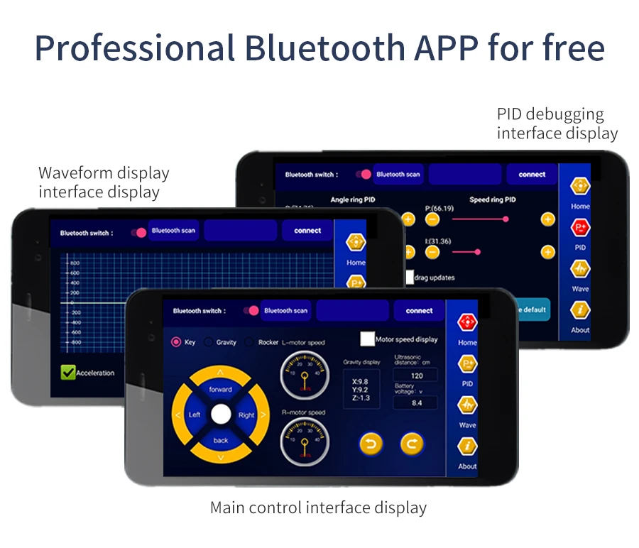 Mecanum wheel chassis: 65mm and 80mm Mecanum wheels are used respectively to achieve 360° omnidirectional movement.