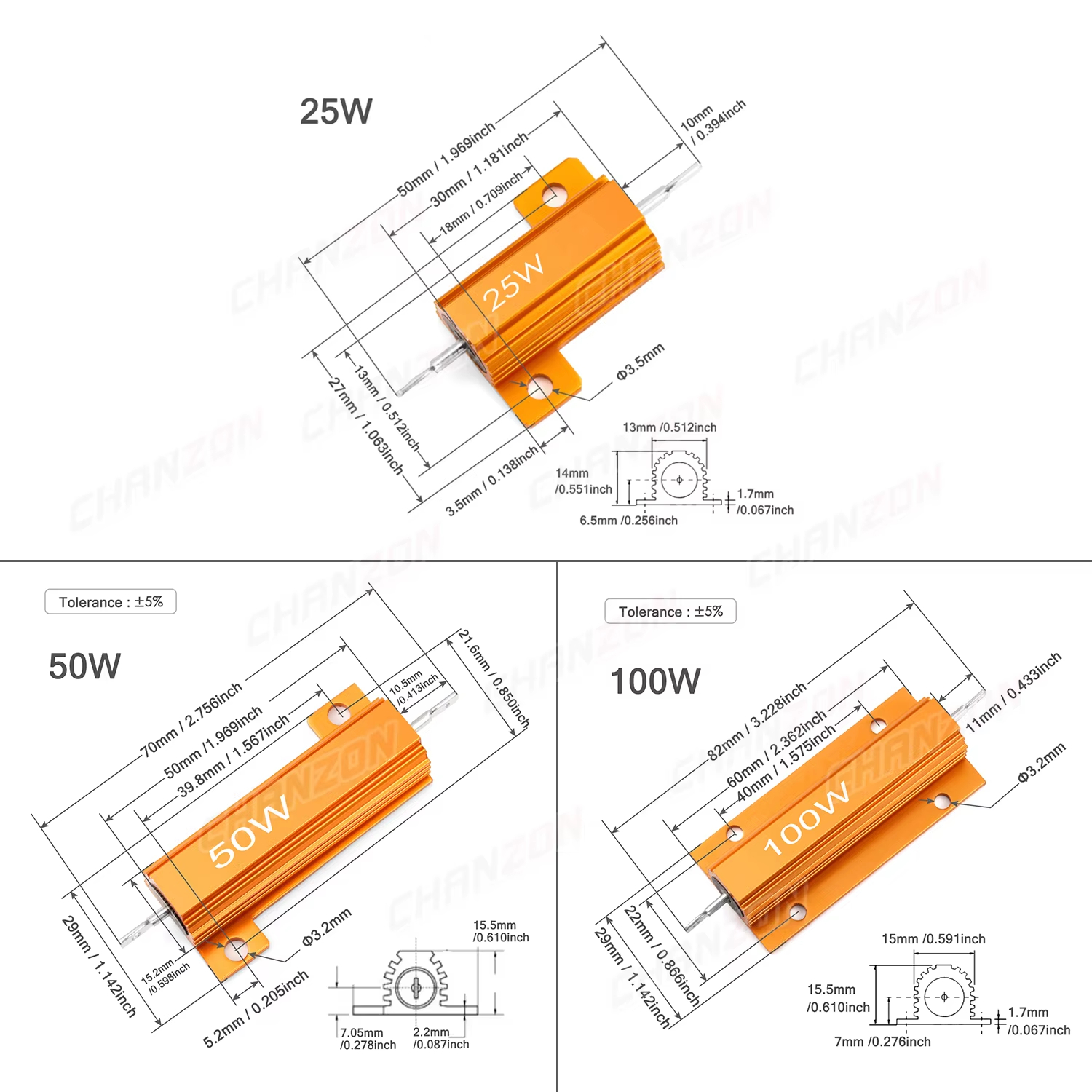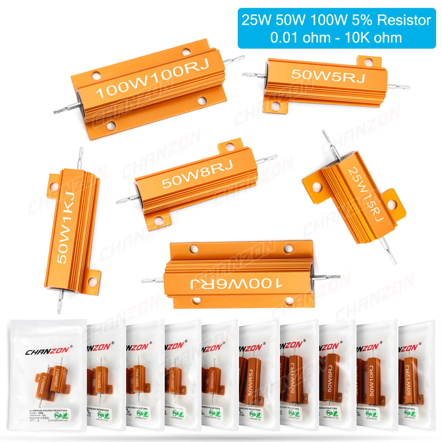 2 Pcs 25W 50W 100W Aluminum High Power Metal Case Wirewound Fixed Resistor 0.01 – 10K Ohm Dummy Load Wire Wound Resistance