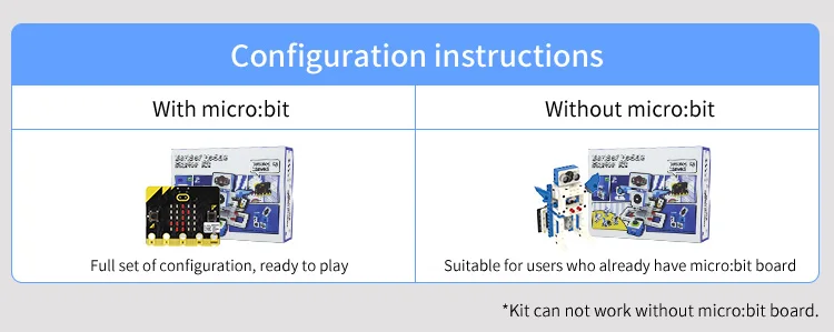 Note: This robot car will not work without a Microbit board, if you do not have a Microbit board, please choose the version with Microbit.