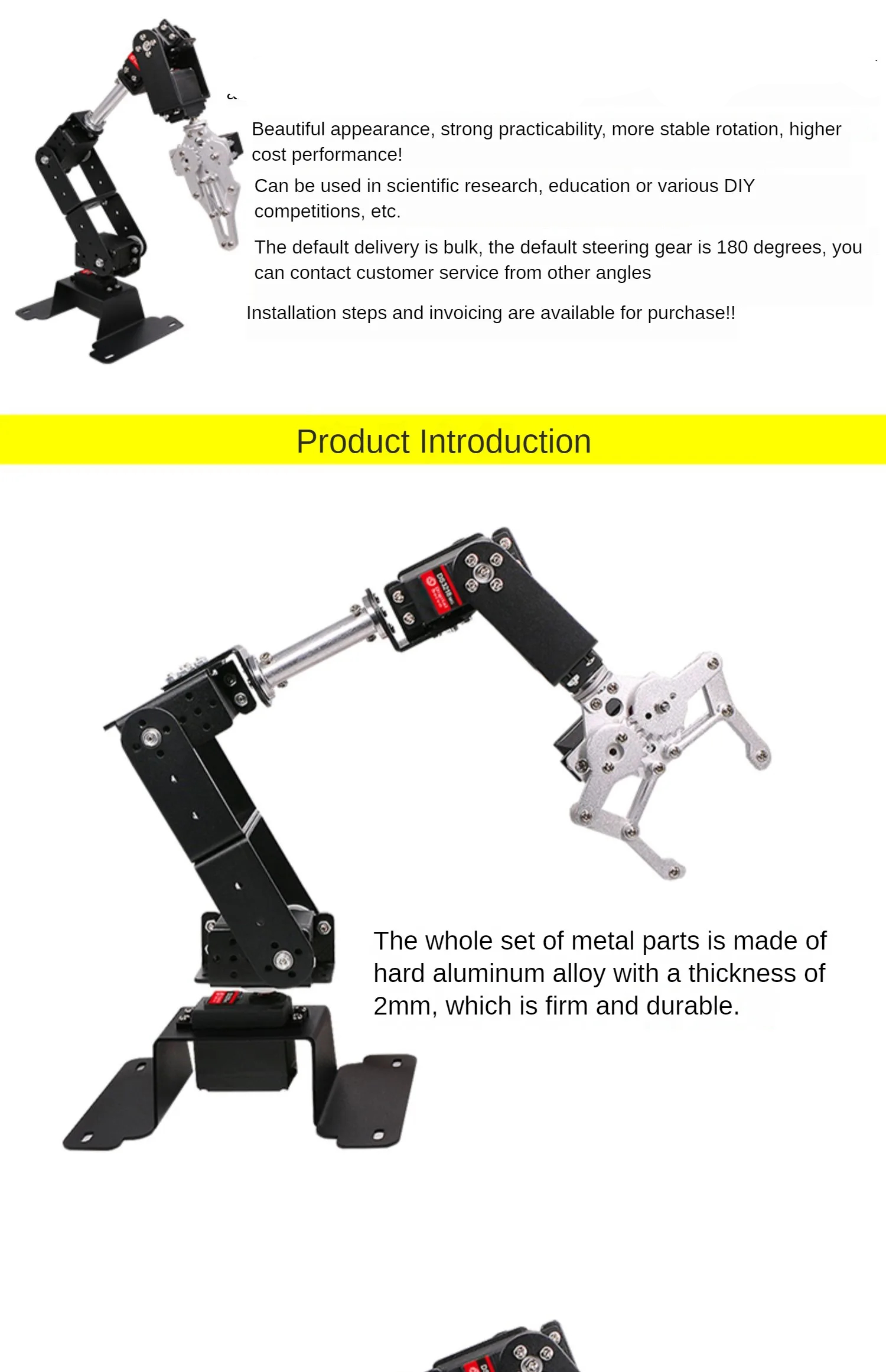 6 dof robot arm frame: 1 set(Not included servos and control board)