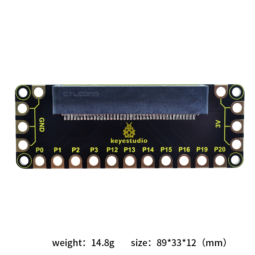 This edge connector offers access to a number of the BBC micro:bit processor pins, such as power IO (input/output) interface, connection pins P0、P1、P2、P3、P12、P13、P14、P15、P16、P19、P20 .