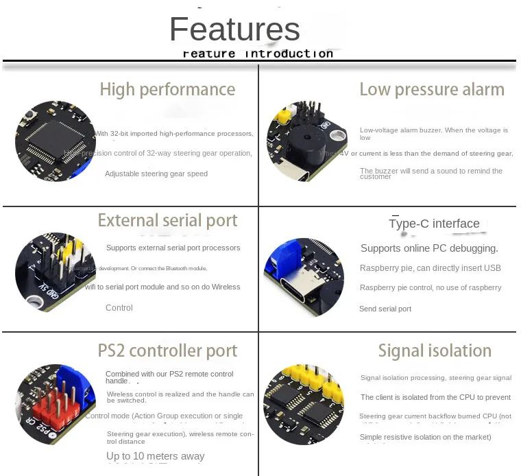 This series of humanoid robot, classic structure, can complete the humanoid robot dance, race walking, push-ups and other classic movements. Simple structure, complete functions, is the education teaching, robot enthusiasts DIY classic and cheap robot materials.