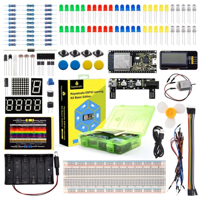 - Complete Starter Kit – Includes essential electronic components and ESP32 board