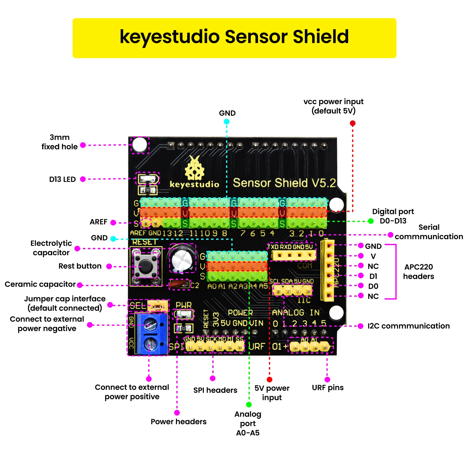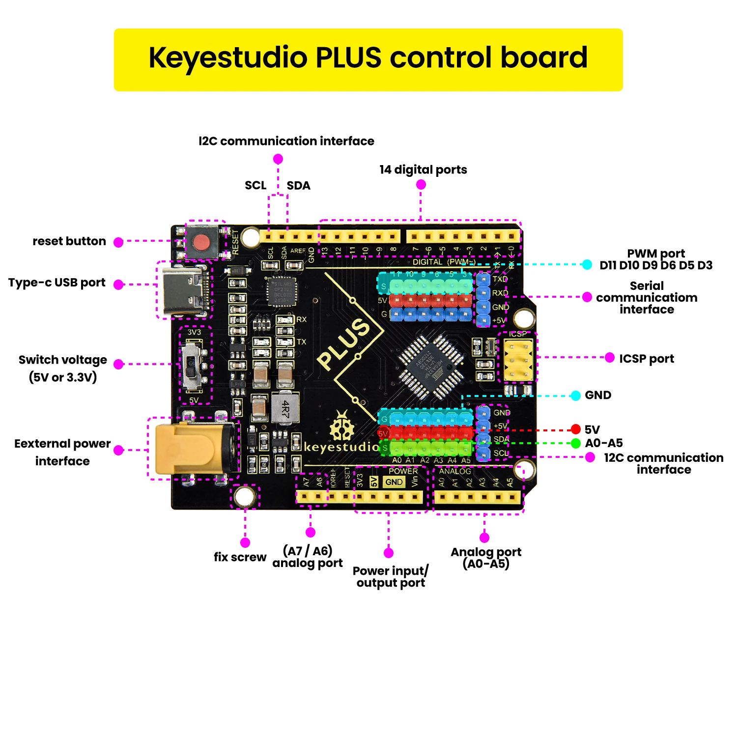 - Supports Arduino programming