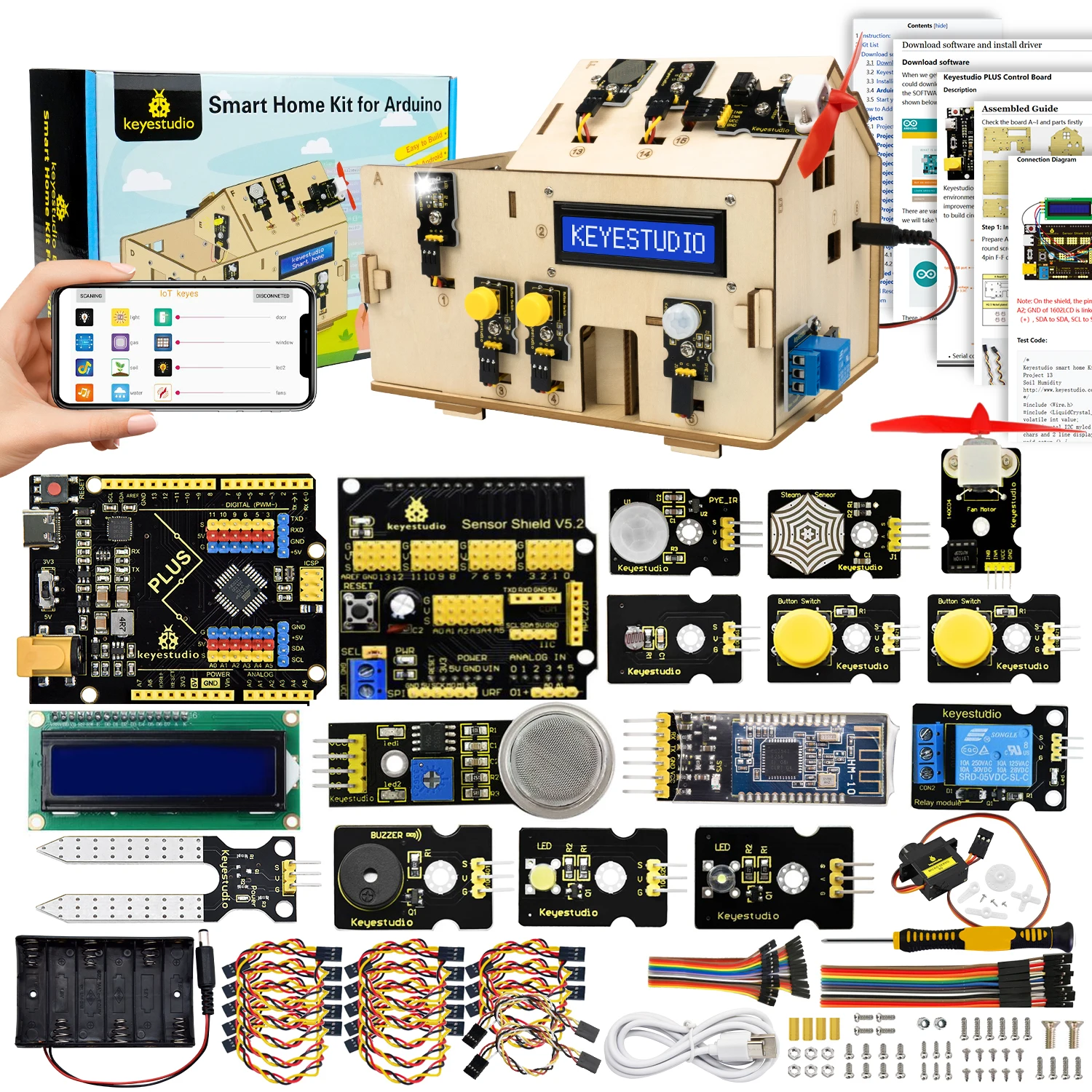 The ESP32 Smart Home IoT Kit is a complete STEM learning solution designed to help users build real-world smart home automation systems.