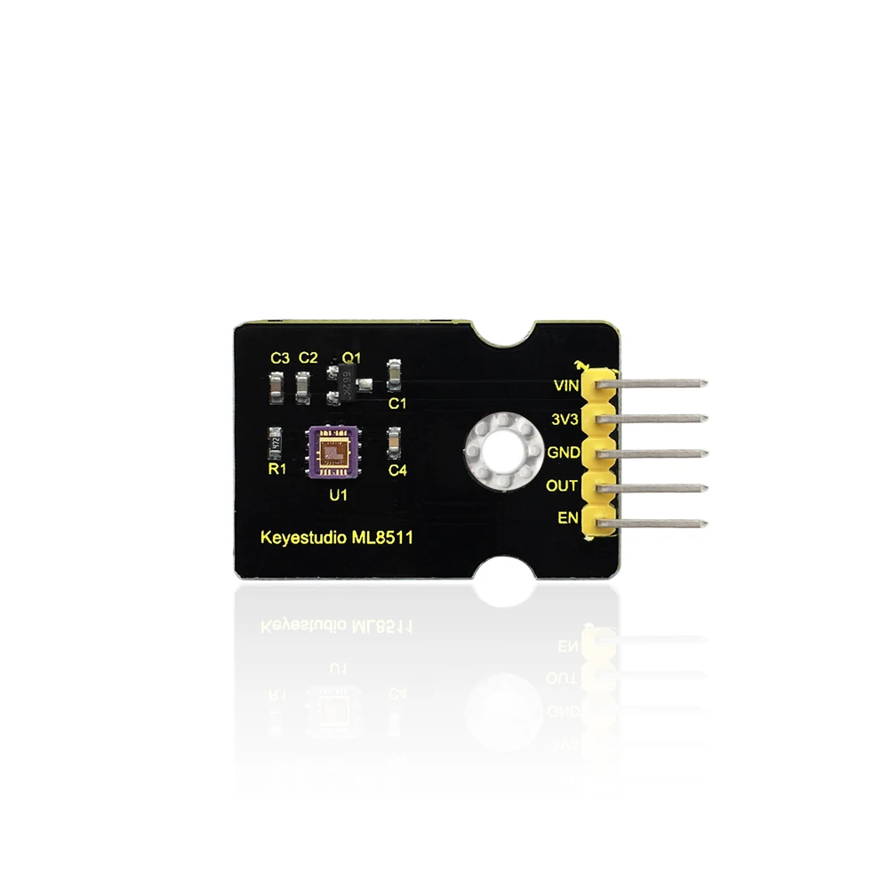 The module uses a common ML8511 UV sensor original, which can be used to detect indoor or outdoor UV density. The sensor IC uses a highly integrated SOI-CMOS technology, suitable for digital and analog circuits. By the principle of converting the photocurrent to the voltage, it can detect the UV intensity and is well used for external circuits. ML8511 can be proportional to the UV light quantity to output analog voltage, so it can be directly connected to the built-in MCU A / D digital / analog converter without photoelectric conversion circuit. Using small and thin surface package, it is suitable for portable equipment. The model also has a fast power saving mode up to 0.1uA, suitable for wearable smart devices, mobile phones and other equipment.