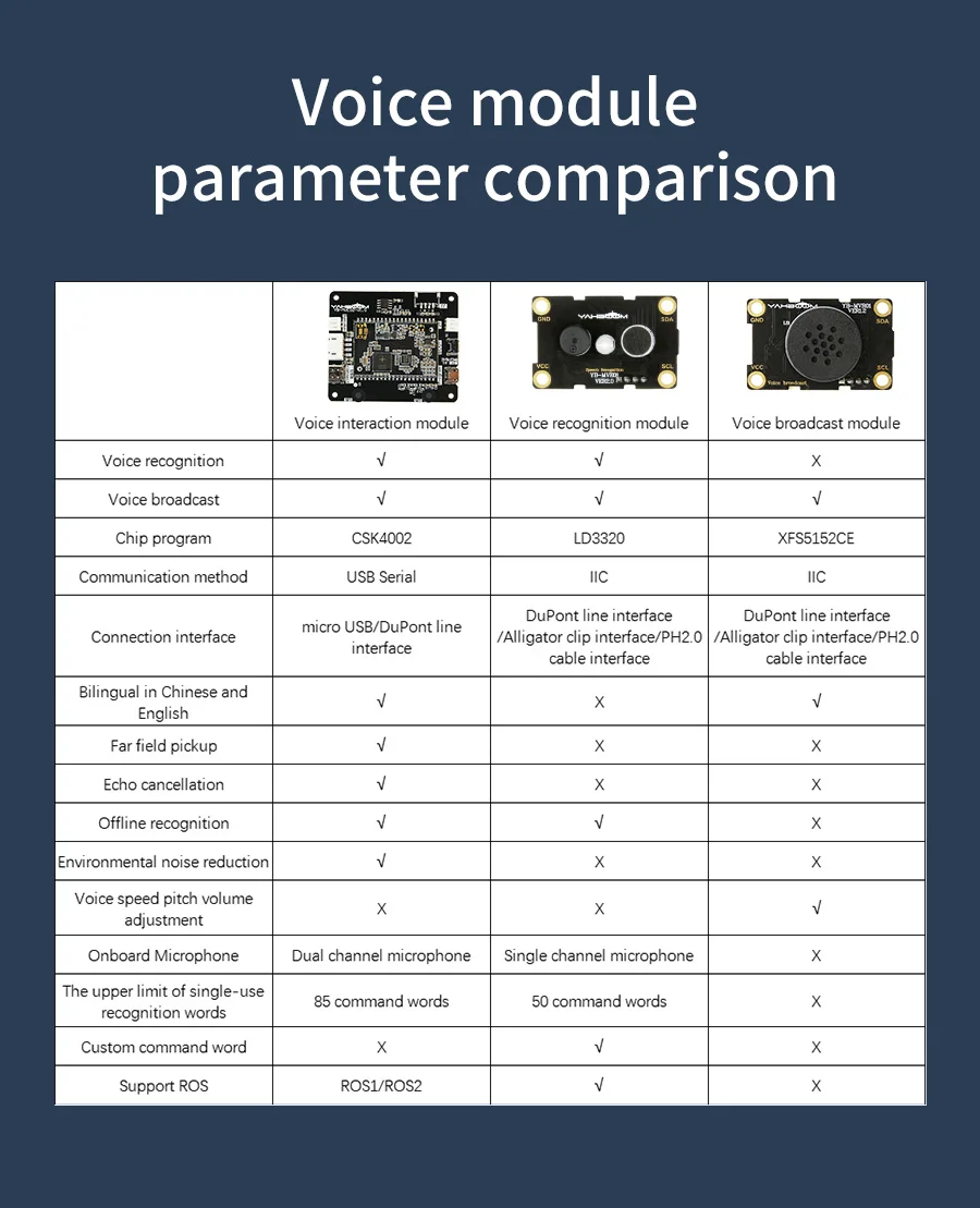 Intelligent Voice Interaction Module AI Recognition Support 85 Voice Commands ROS ROS2 Microphone for RaspberryPi Jetson