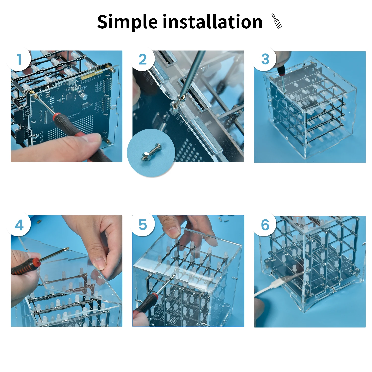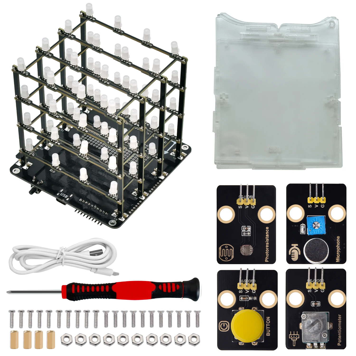 4x4x4 DIY RGB LED Cube Electronic Kit For Arduino Leonardo Support Scratch Programming Potentiometer Voice Control