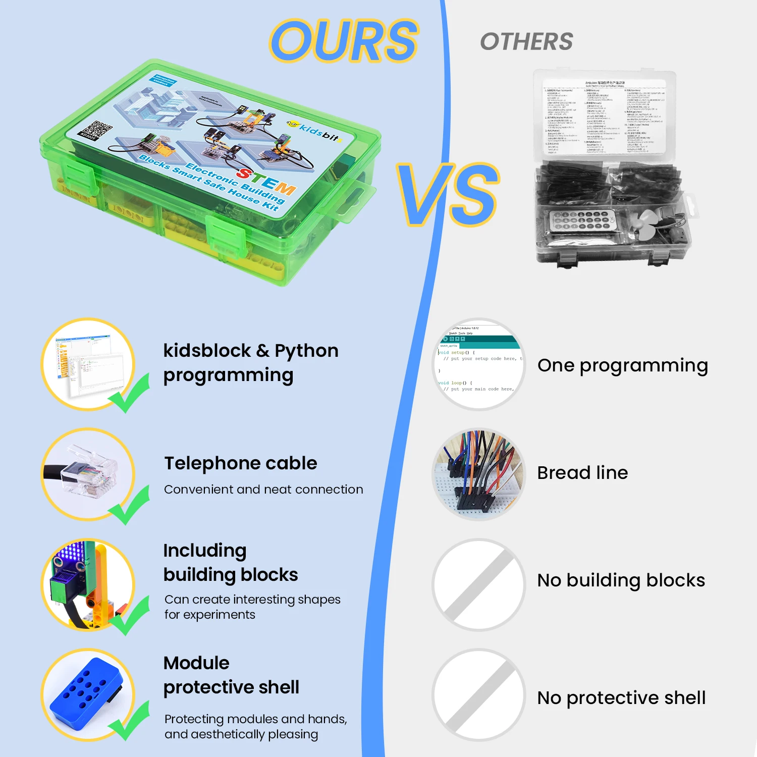 Based on KidsBlock and python programming language, the Smart Safe House Kit is designed for children aged 9-12 years old