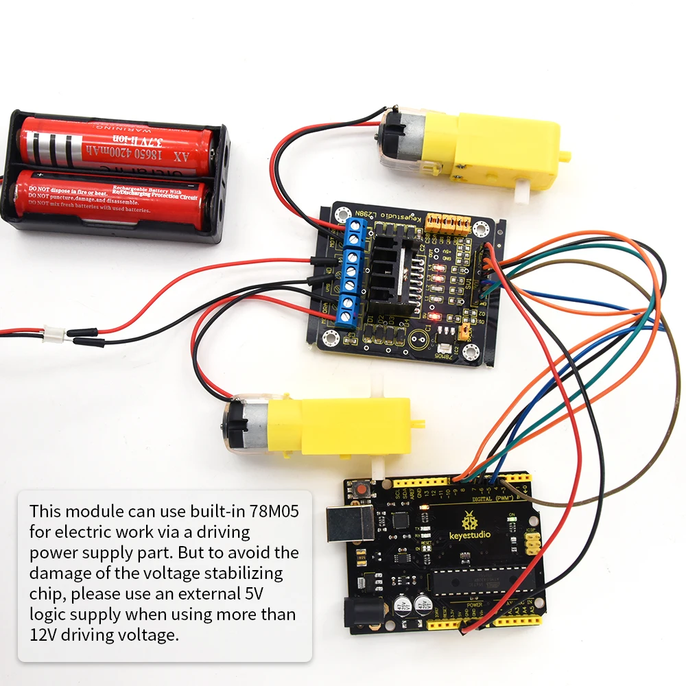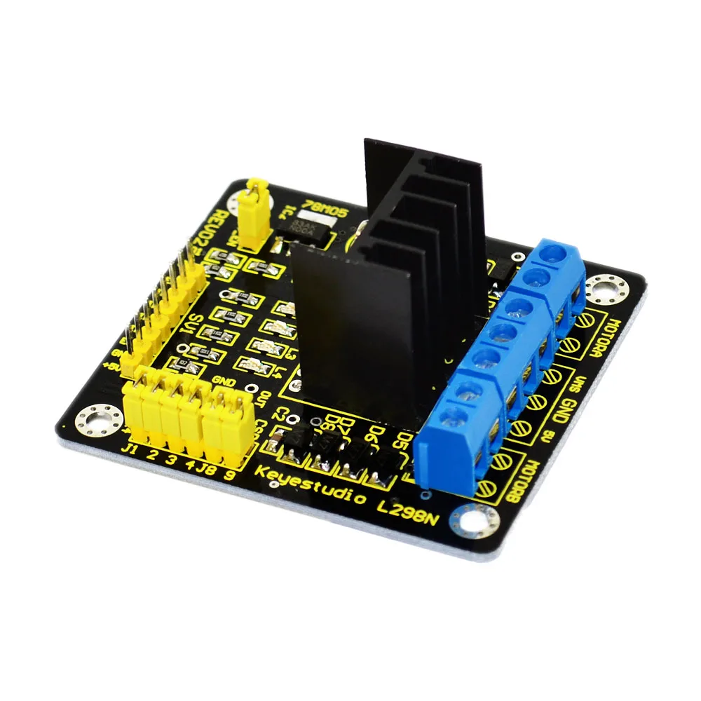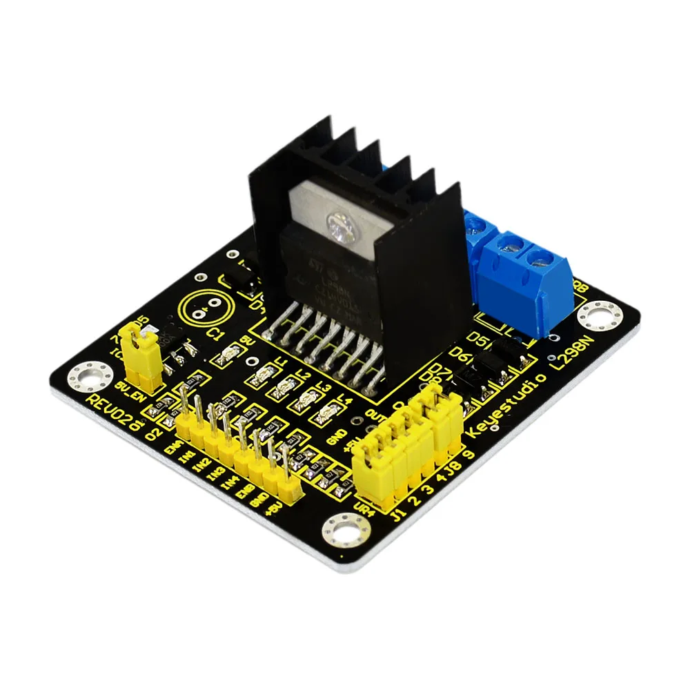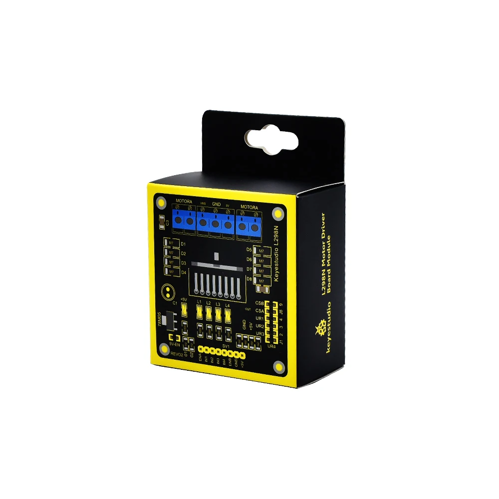 Using L298N made by ST Company as the control chip, the module has characteristics of strong driving ability, low calorific value and strong anti-interference ability.