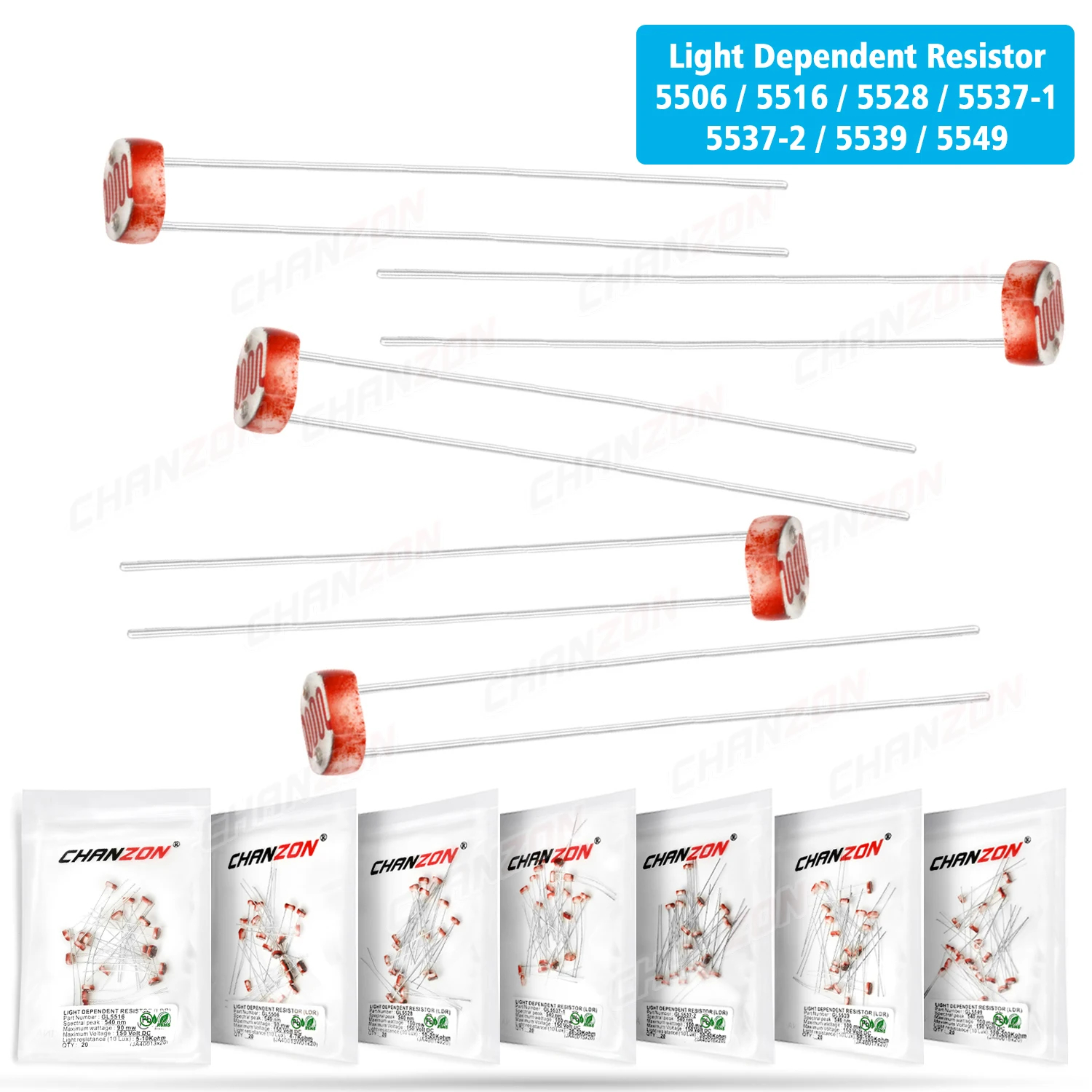 20 Pcs/Lot LDR Light Dependent Photo Resistor Sensor 5506 5516 5528 5537-1 5537-2 5539 5549 GL5528 CDR Photoresistor Resistance