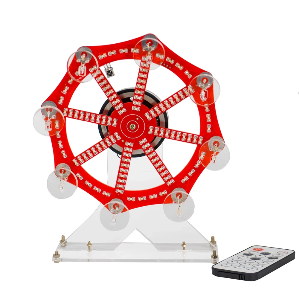 LED Colorful Electric Ferris Wheel DIY Electronic Kit Microcontroller Soldering Project IR Remote Control DC5V