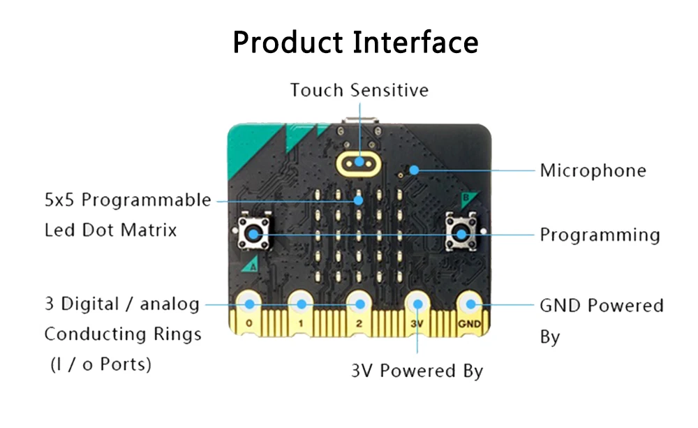 Micro: bit is an ARM-based microcontroller designed by BBC. Consisting of onboard Bluetooth, accelerometer, electronic compass, three buttons, 5 x 5 LED dot matrix, it is only half the size of credit card and mainly used for programming education for teenagers.