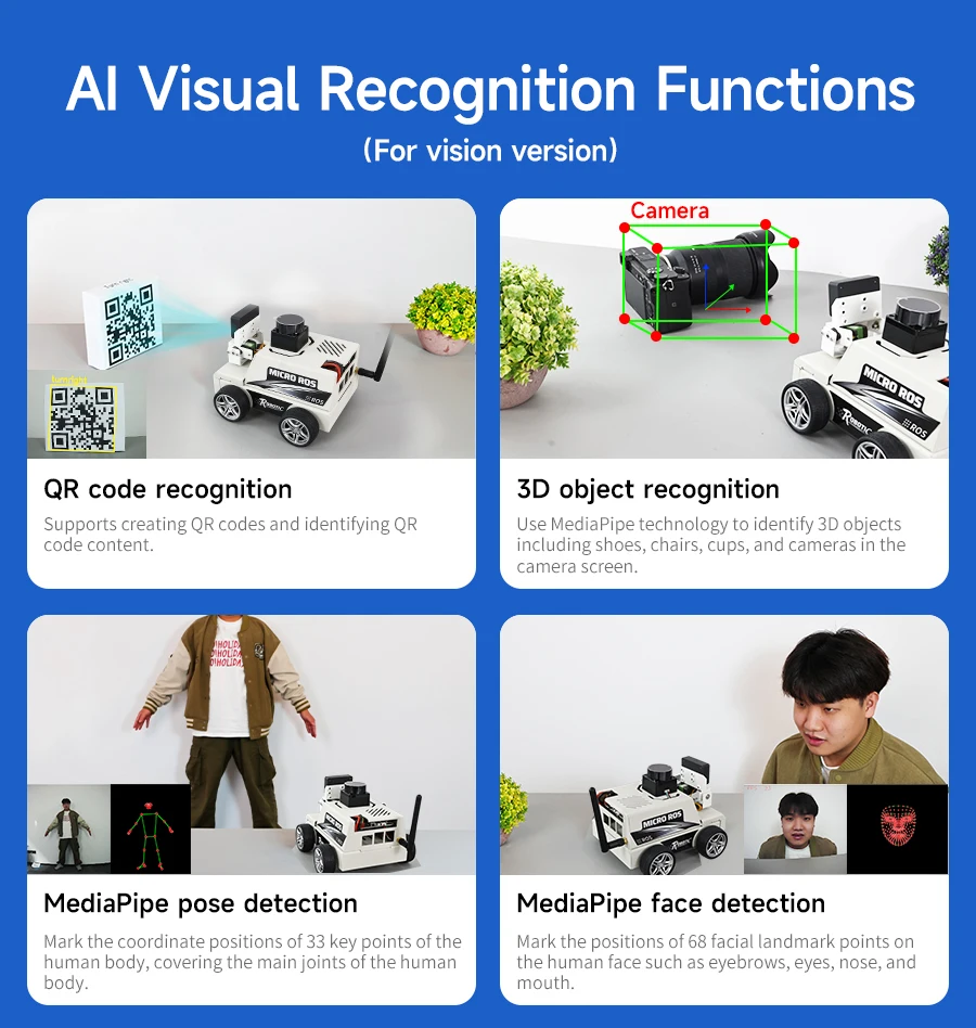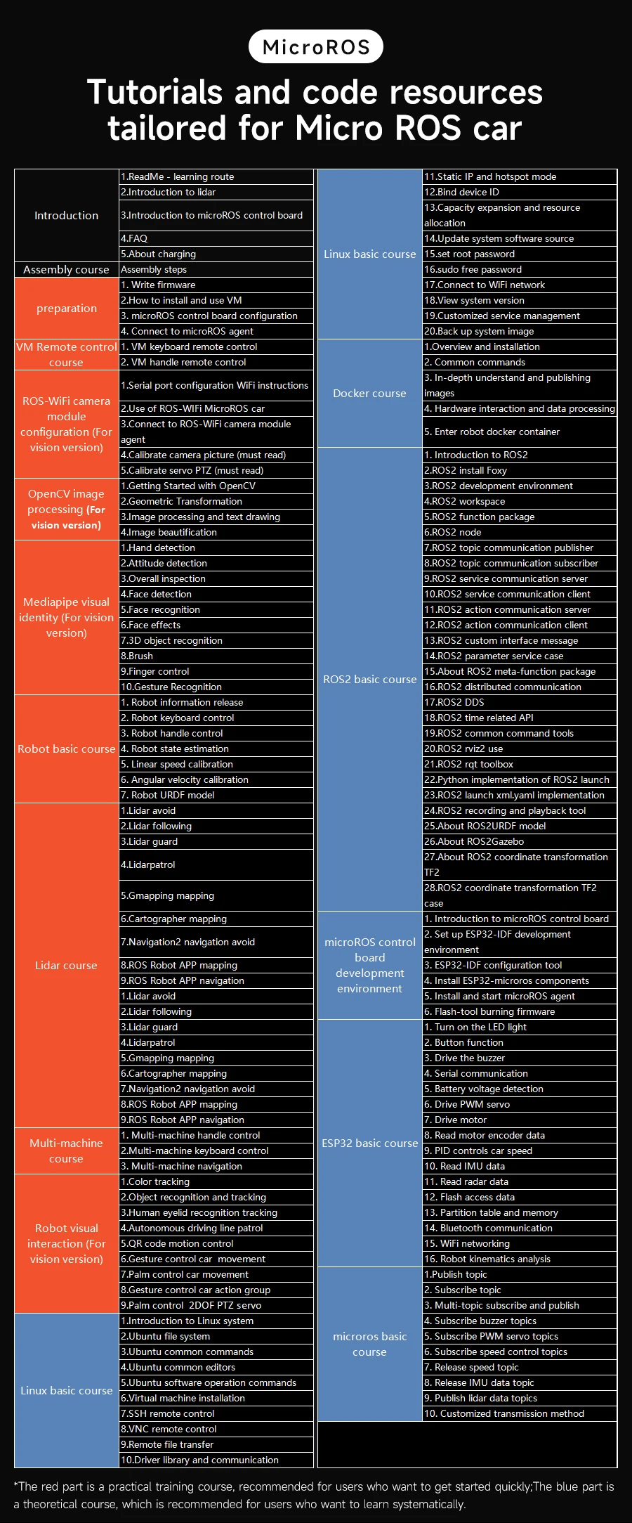 3. Adopt ROS2-Humble operating system and Python3 programming, and provides a large number of courses and source codes for user reference.