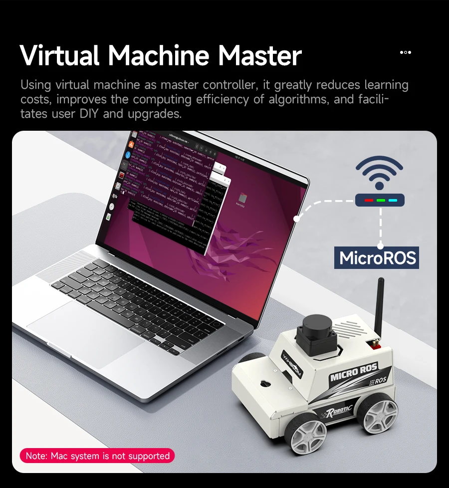 1. It breaks away from the traditional Jetson NANO/Raspberry Pi development board and uses a virtual machine as the controller to reduce costs.