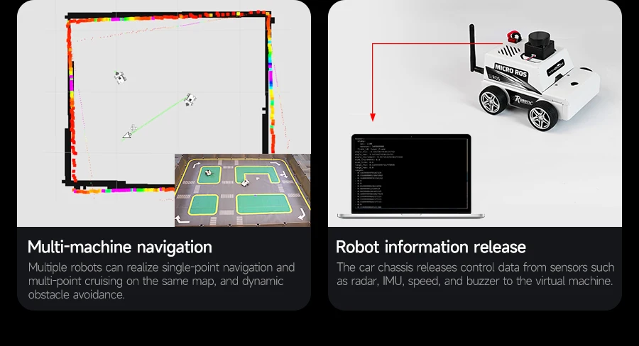4. Lidar obstacle avoidance, following, mappingnavigation, RVIZ simulation, multi-machine synchronization control, APP/handle remote control and other functions are all supported.