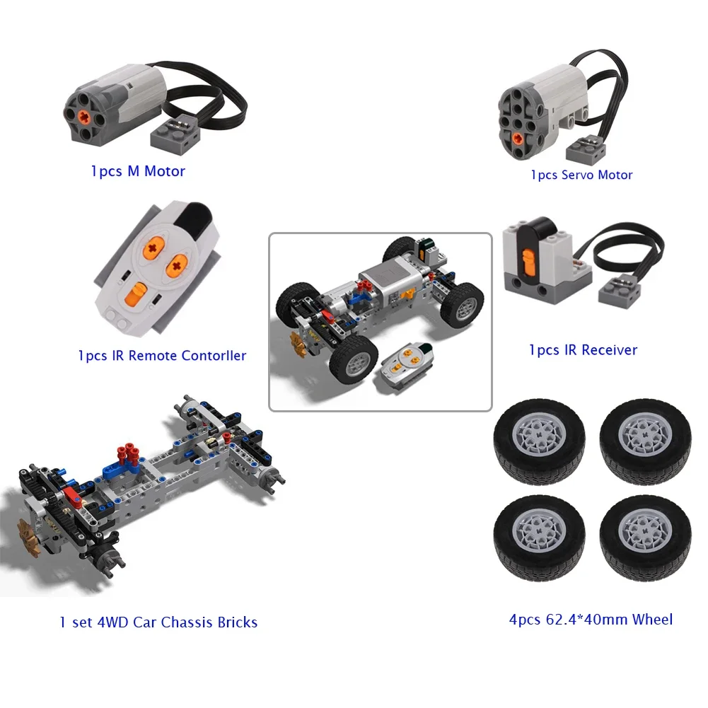 4WD Four-Wheel Drive Technical Car Chassis Bricks IR Remote Control Reciever M Servo Motor AA Battery Box MOC Parts Kit for legoeds