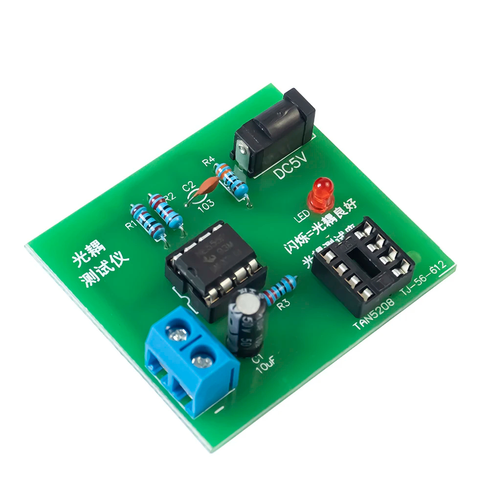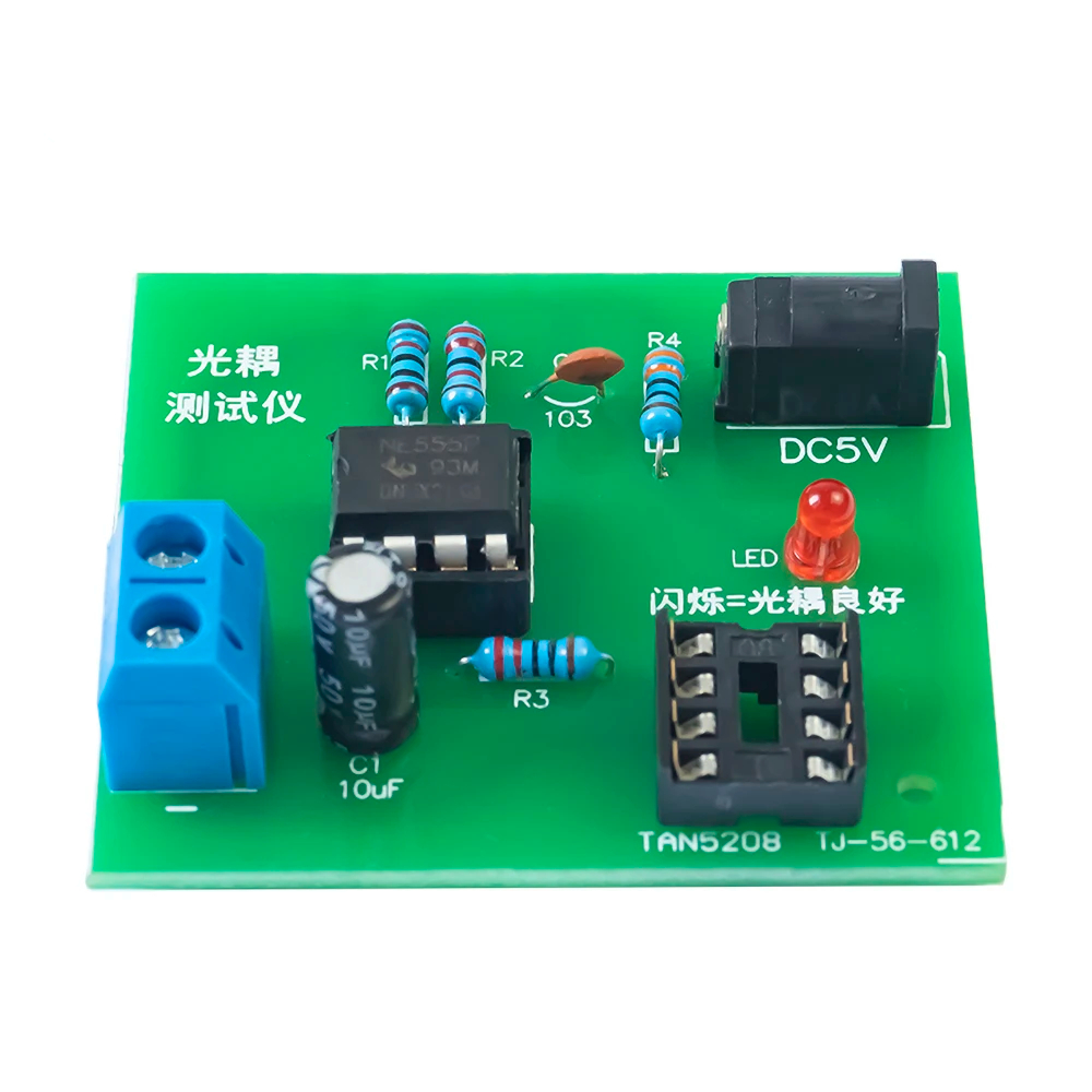 Optocouplers, also known as optocouplers, are commonly used electronic components that are difficult to test with ordinary instruments. If a optocoupler with quality issues is installed in the circuit, it will cause the circuit to not work properly and it will be troublesome to replace it. Using this circuit, insert the optocoupler into the test stand, and after powering on, the LED flashes to indicate that the optocoupler is in good condition.