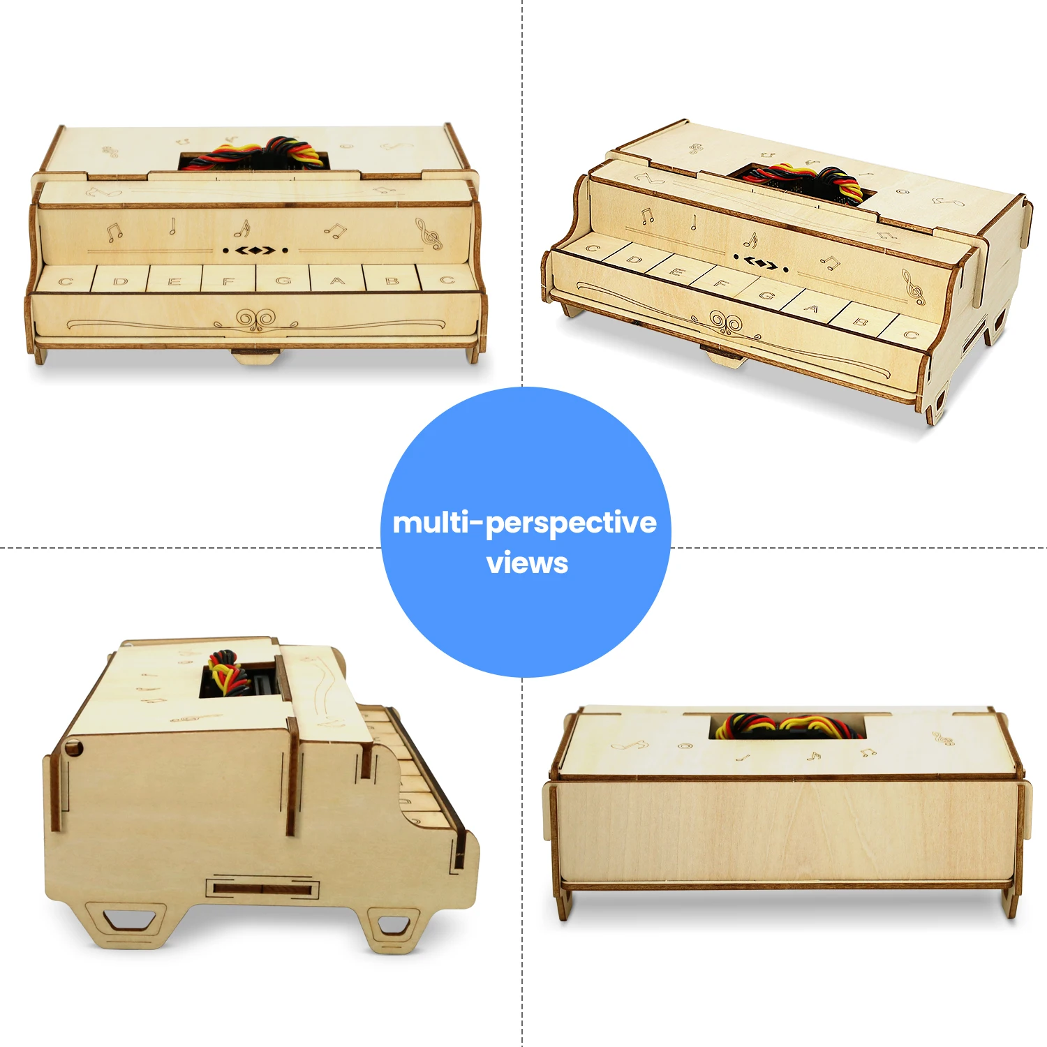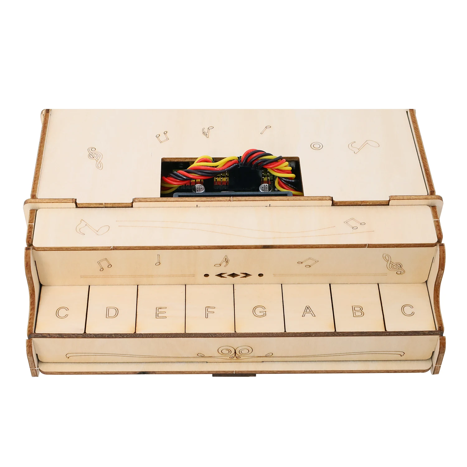 With basswood as a structural material, this unique piano learning kit integrates eight button modules as well as micro:bit mainboard or ESP-32 Easy Coding Board as its main control board. Besides, a built-in buzzer of the board enables it to play scales of do, re, mi, fa, so, la,si and Do .