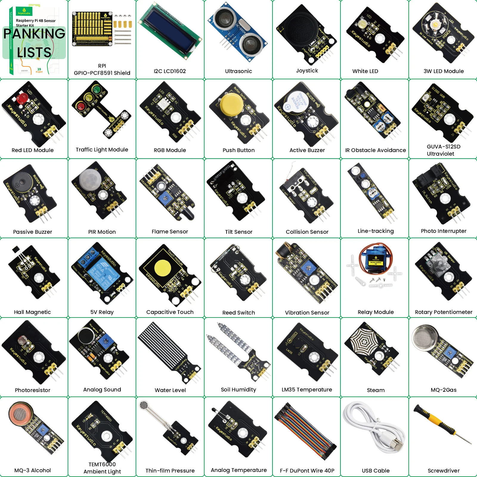 Keyestudio Raspberry Pi Kit Sensor Starter Modules Kit For Raspberry Pi 4B DIY ElectroniKit Python Programming Kit(NO RPI Board)