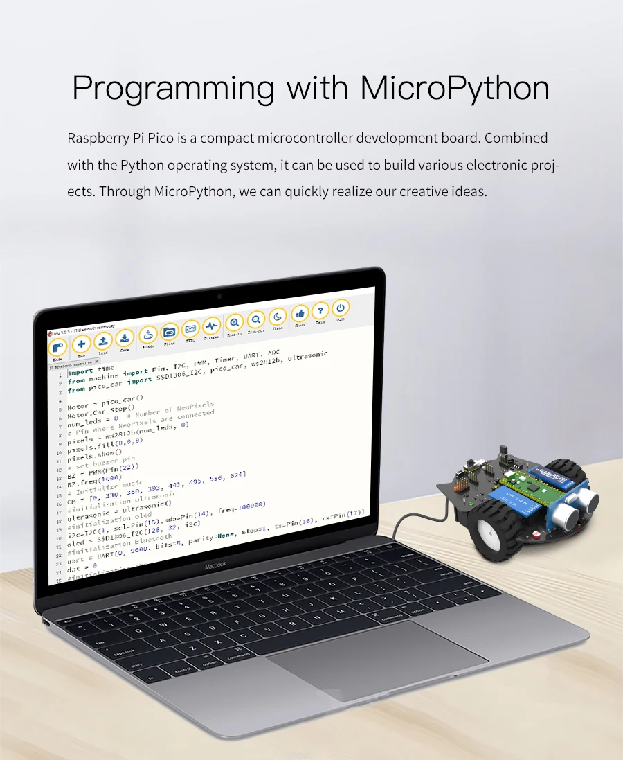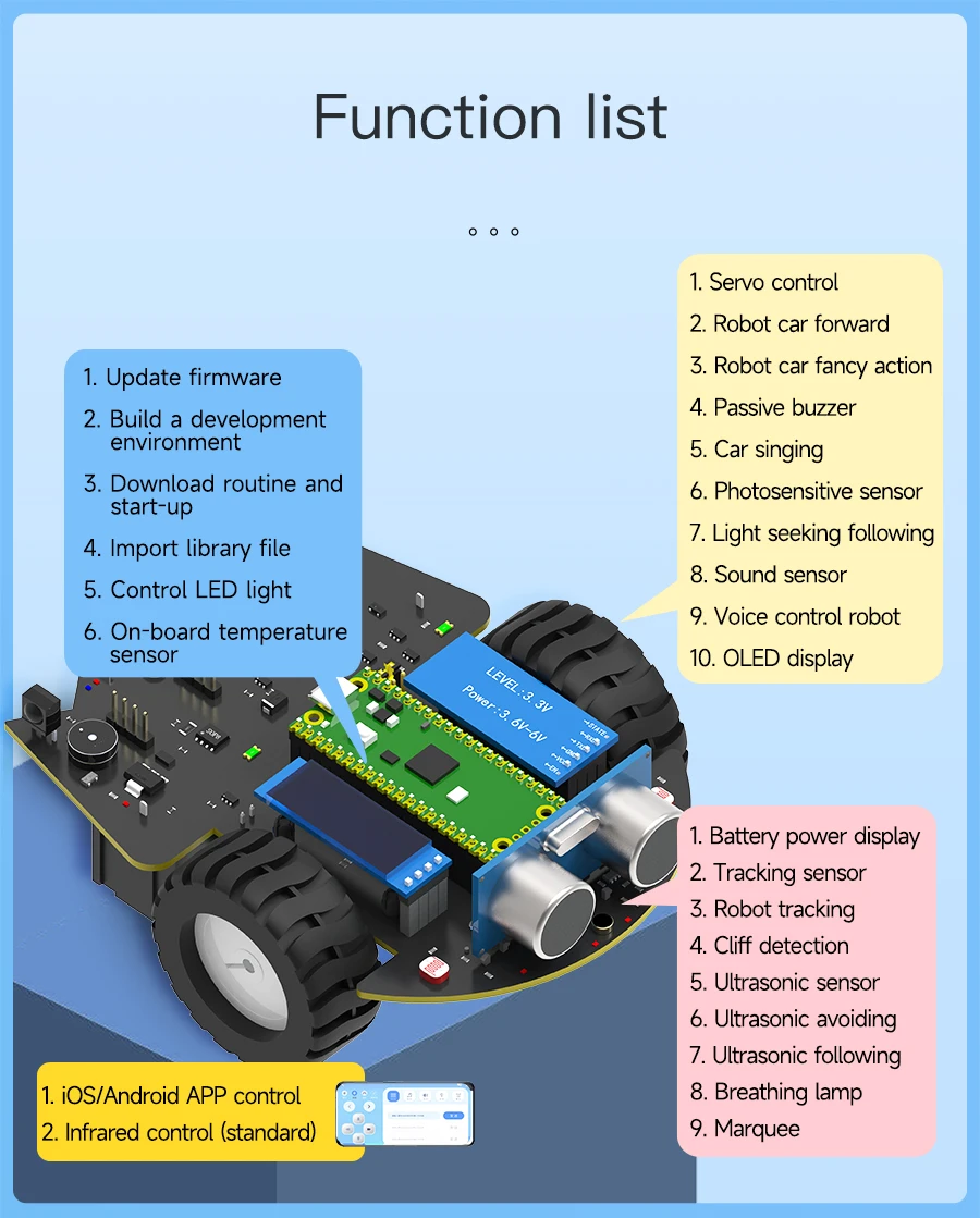 Raspberry Pi Pico Robot Car Kit Programmable Car Support MicroPython Programming For Student DIY Electronic Project Raspberry Pi
