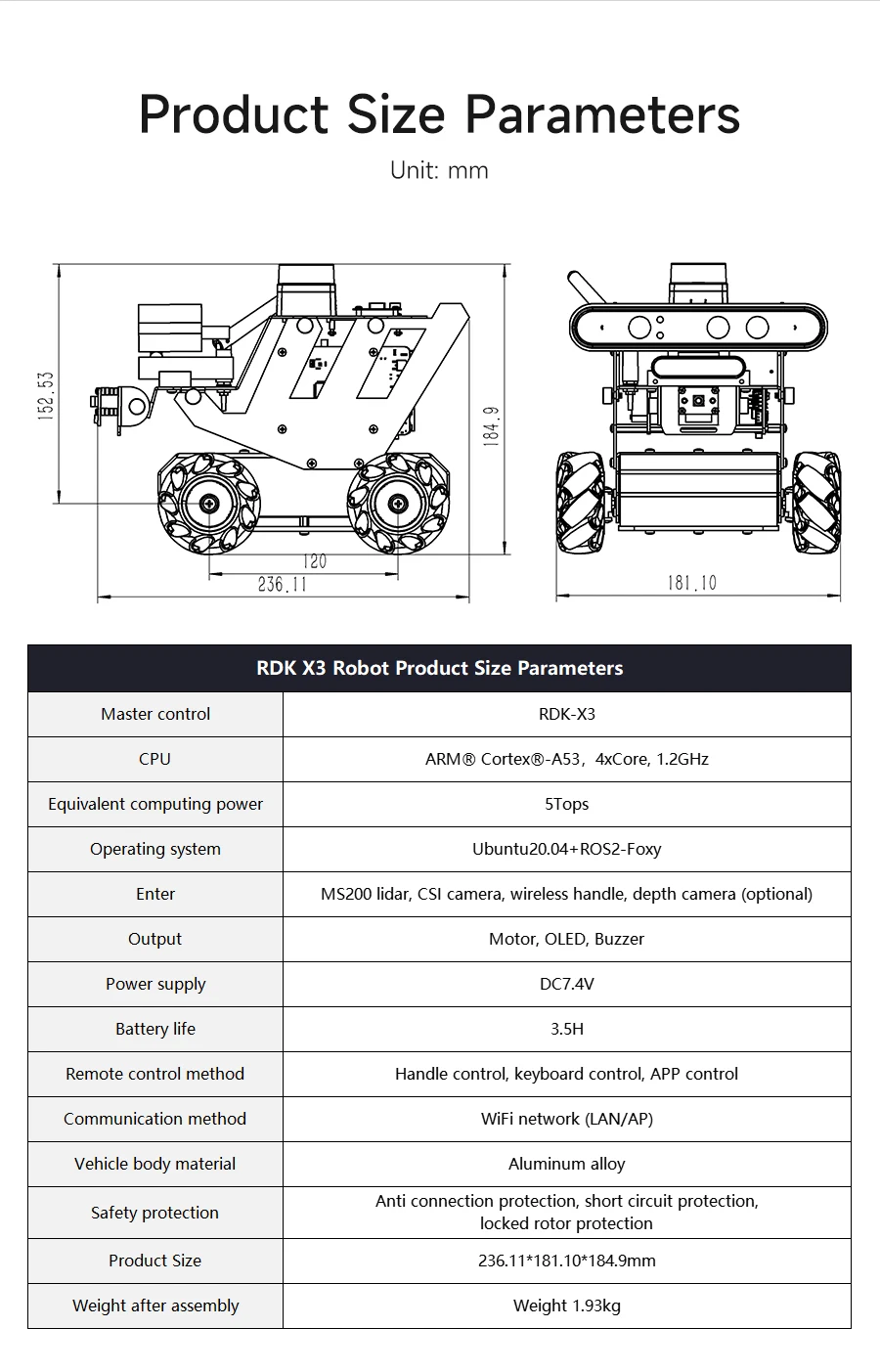 RDK X3 ROS2 Robot Car Structure and Parameter: