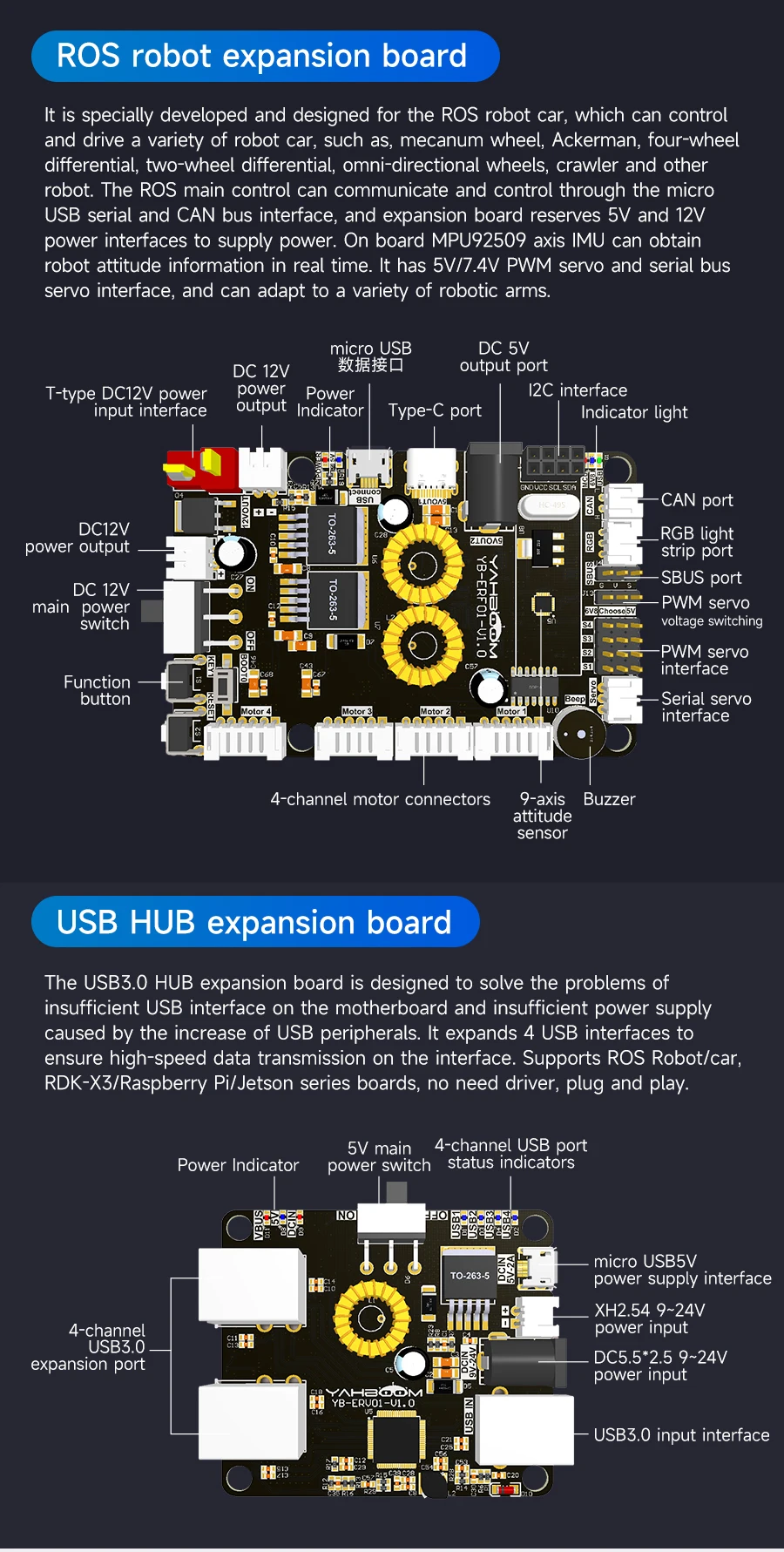 The car is equipped with Mecanum wheels, depth cameras, TOF lidar, which can realize map-building navigation, intelligent obstacle avoidance, gesture control, visual line inspection and other functions.