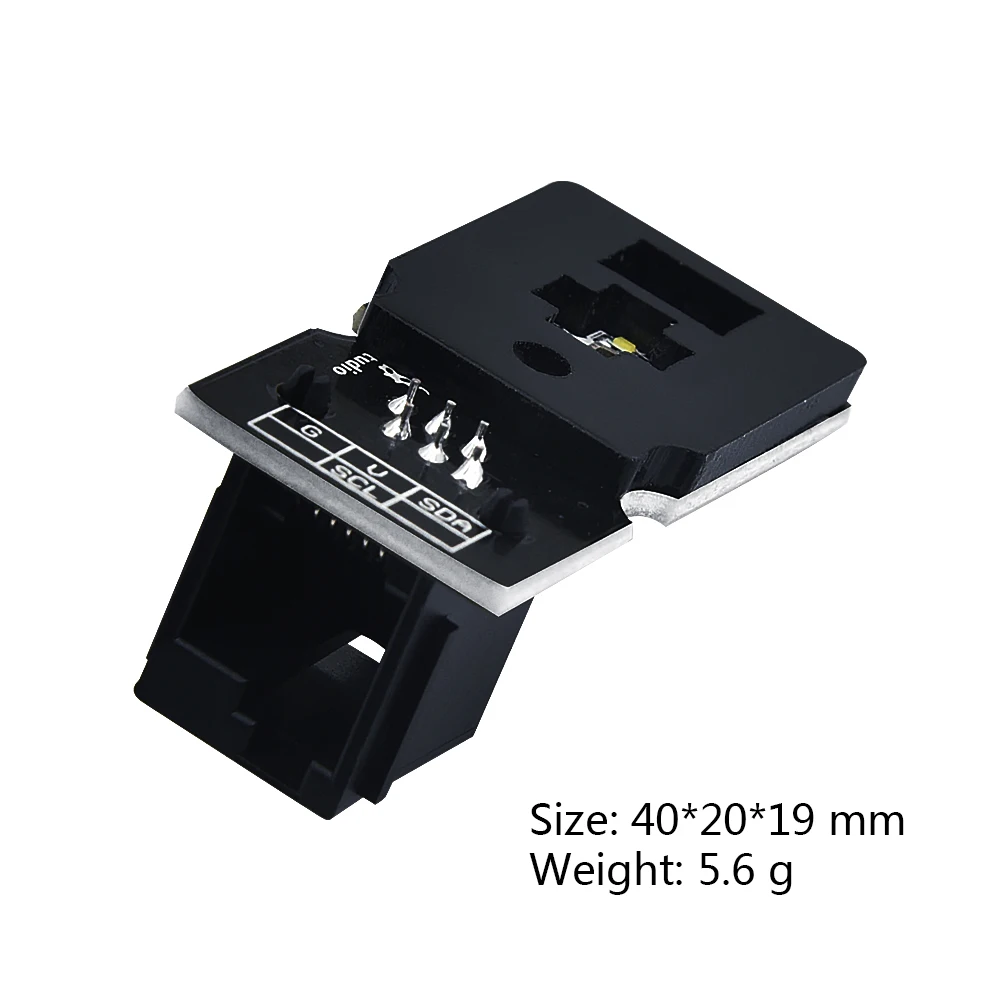 Moreover, to avoid the surroundings interference and increase the accuracy,we particularly add an infrared light shielding plate on the sensor’s bottom, so that infrared spectrum element of incident light is minimized to make color management more accurate. On the sensor bottom you can see 4 yellow highlight LEDs, which can ensure that the sensor can use normally under low ambient light, actually realizing the fill light function. The communication method of the sensor is I2C communication.