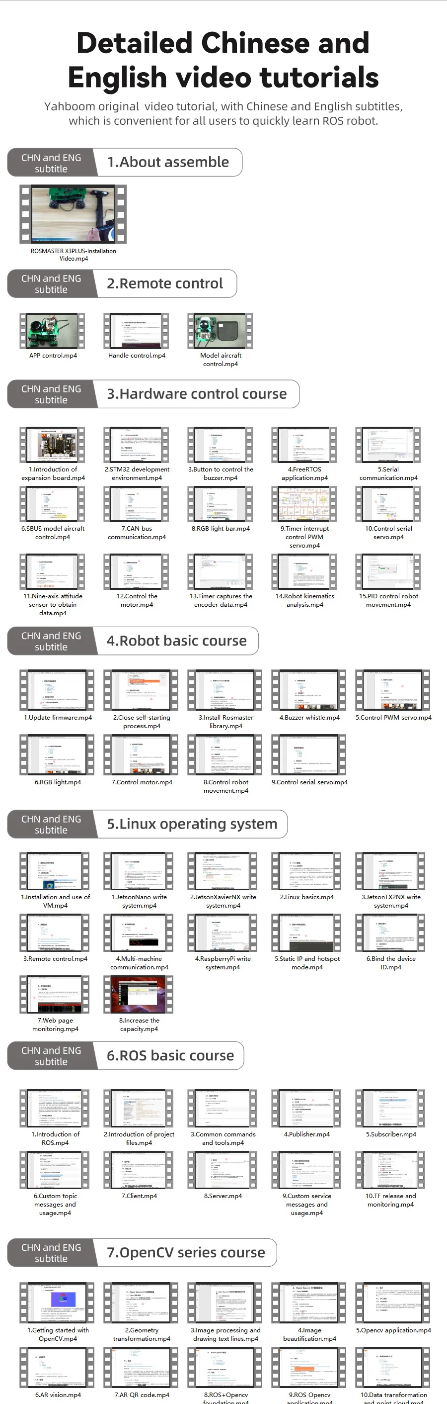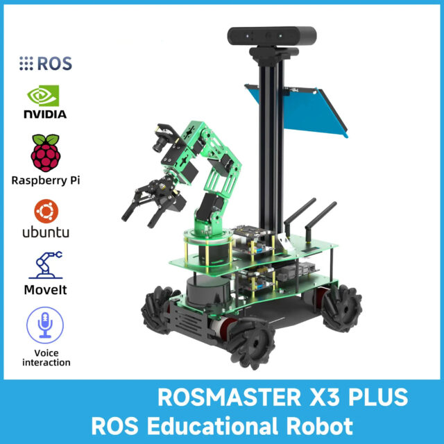 ROSMASTER X3 PLUS is an omnidirectional movement robot developed based on the ROS robot operating system. It supports contollers: Jetson NANO 4GB/Orin NANO/Orin NX and Raspberry Pi 5. It is equipped with high-performance hardware configurations such as lidar, depth camera, 6DOF robotic arm, 520 high-power motor, voice recognition interactive module, and HD 7-inch display screen. It can realize applications such as APP mapping and navigation, automatic driving, human feature recognition, moveIt robotic arm simulation control and multi-machine synchronous control. It supports mobile phones, handles, computer keyboards remote control. 124 video tutorials with Chinese and English subtitles and codes are provided for free.