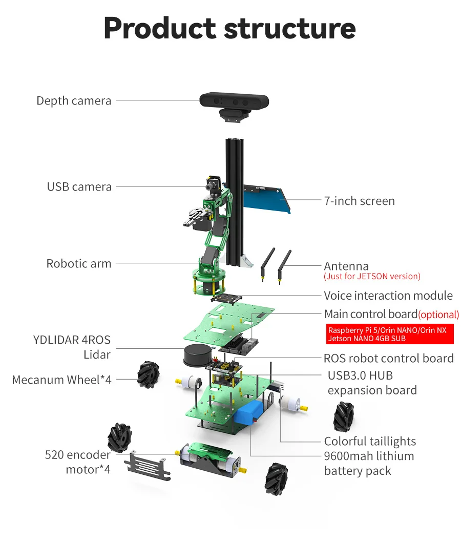 X3PLUS supports four development boards: Jetson NANO 4GB/Orin NANO/Orin NX/RaspberryPi 5, suitable for different users.