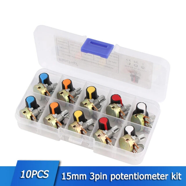 WH148 Potentiometer Kit B1K 2K 5K 10K 20K 50K 100K 250K 500K 1M 15mm Linear Taper Rotary Resistor Potentiometers 3Pin With Knob