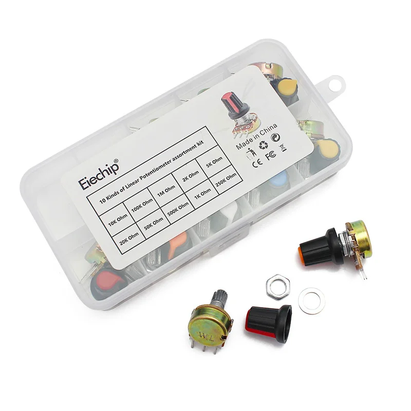WH148 Potentiometer Kit B1K 2K 5K 10K 20K 50K 100K 250K 500K 1M 15mm Linear Taper Rotary Resistor Potentiometers 3Pin With Knob