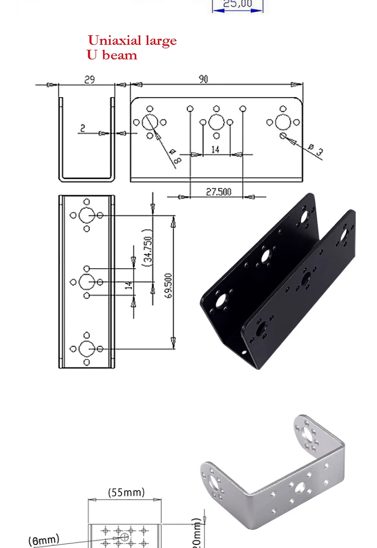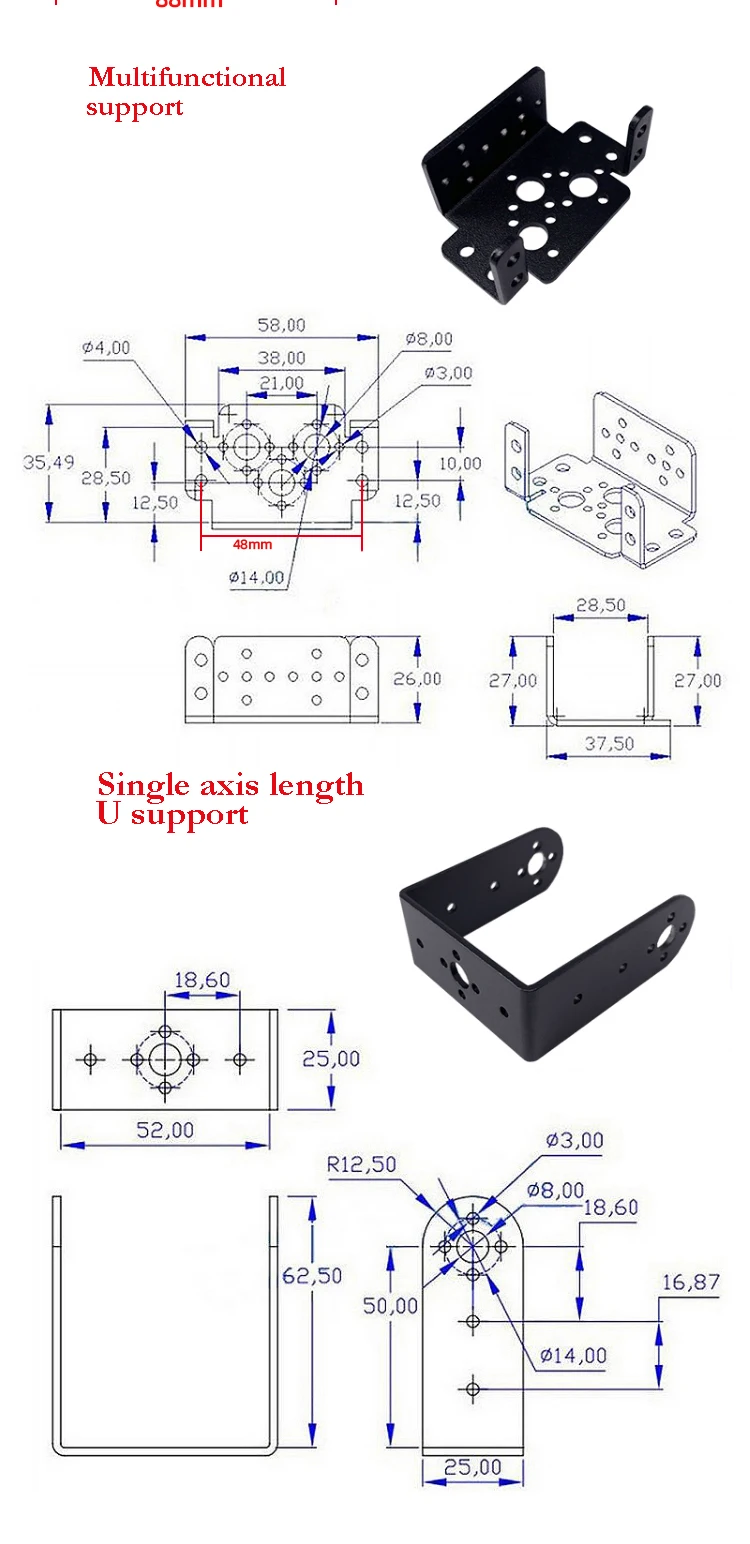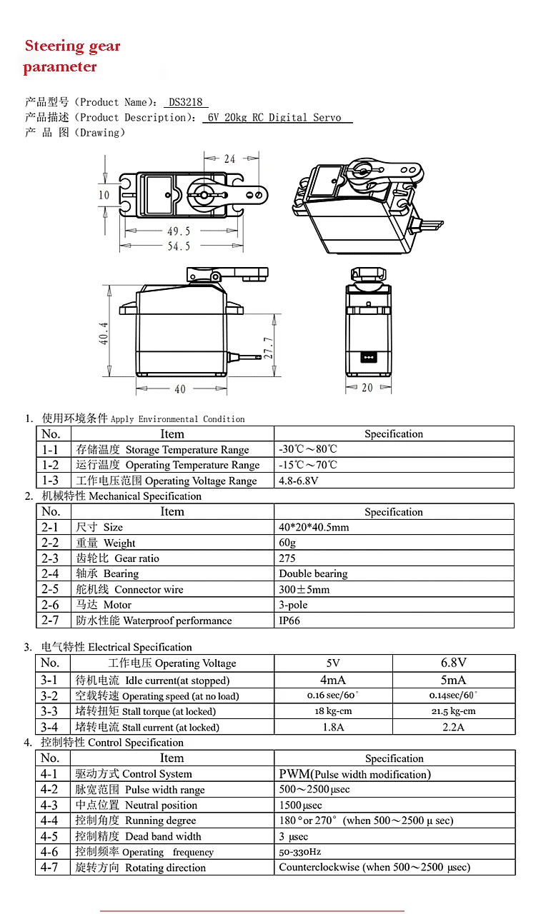 Kit 6: Just 180 degree Black chassis + 2 PCS servo 3218(20kg)