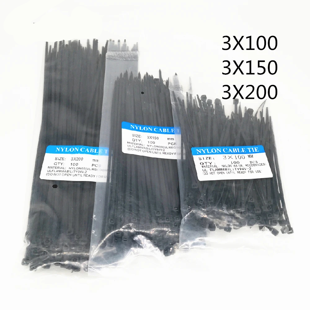 100Pcs Nylon Cable Self-locking Plastic Wire Zip Ties Set 3*100 3*150 3*200 MRO & Industrial Supply Fasteners & Hardware Cable