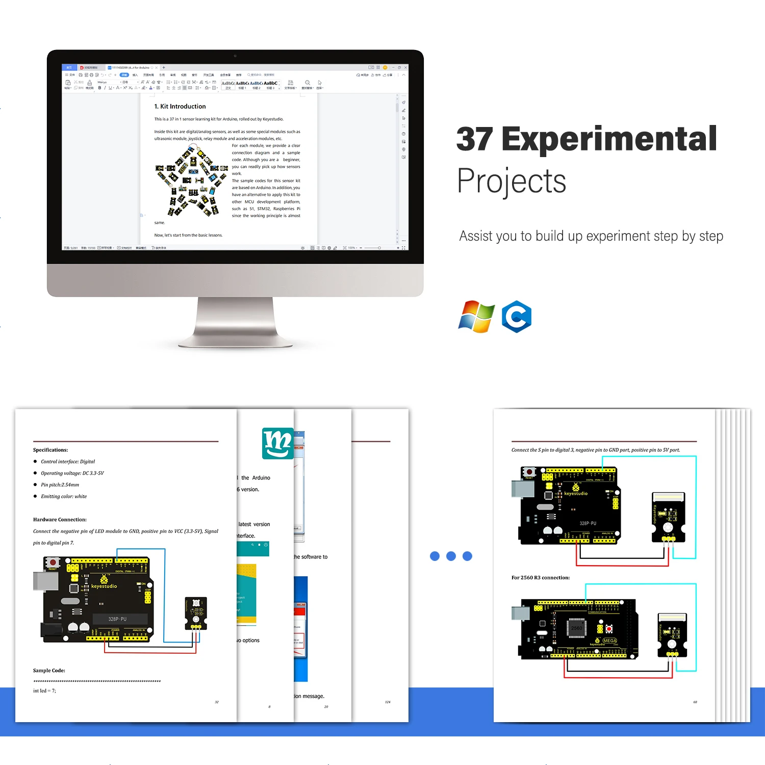 The sample codes for this sensor kit are based on ARDUINO because it’s open source and easy. And if you are good at this, you can also apply this kit to other MCU development platform, such as 51, STM32, Raspberries Pi. The working principle is pretty much the same.